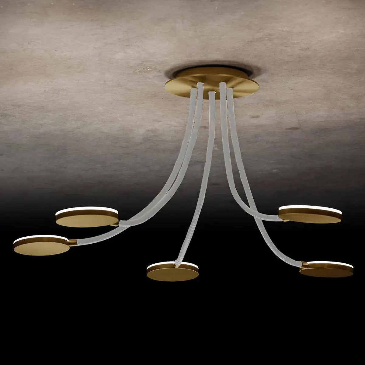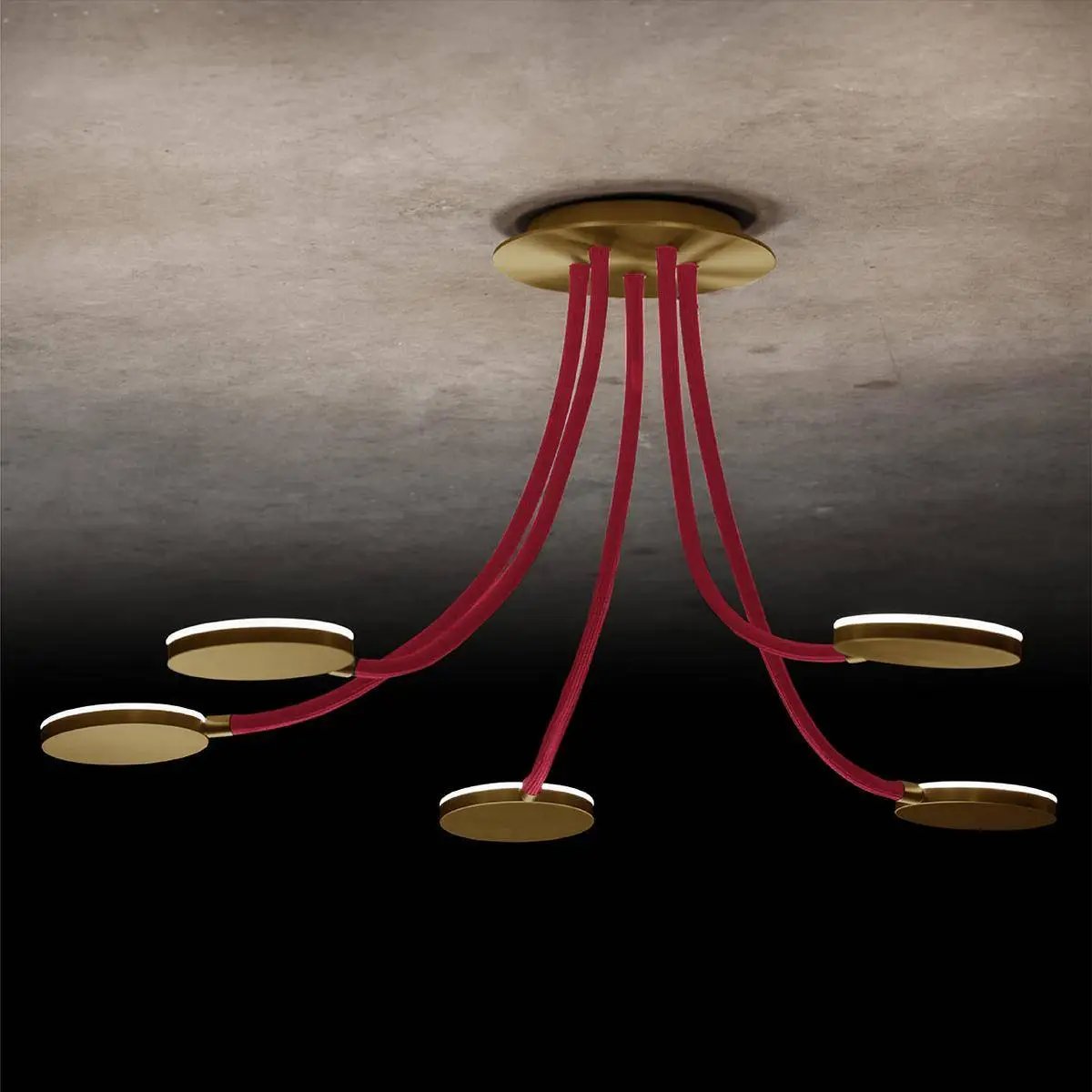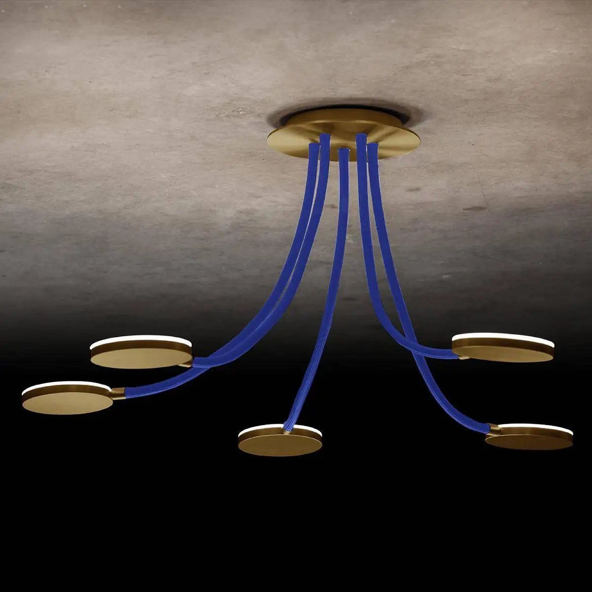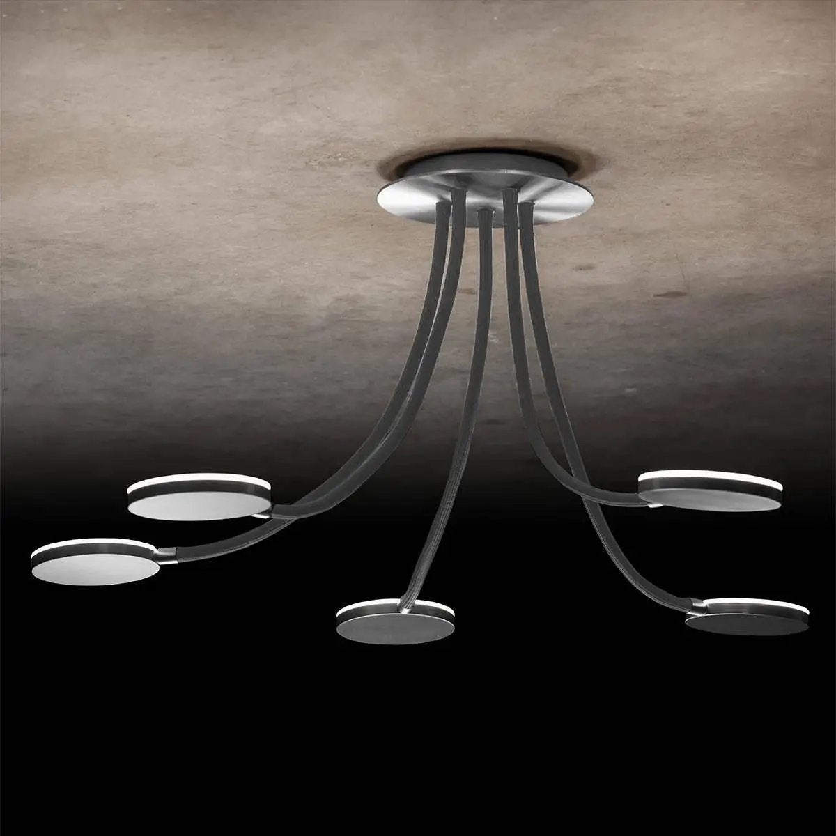Flex D5 - Die ausgefallene LED-Deckenleuchte. Eine leichte Montage, mit Hilfe des magnetischen Baldachins, individuell einstellbare Flex-Schläuche und schwenkbare Reflektoren, all das bringt die Deckenleuchte Flex mit sich! Die Leuchten sind stufenlos dimmbar über einen Phasenabschnittsdimmer. Maße Baldachin: 200mm, Arme: 600 mm; Oberflächen: messing, schwarz, platin, aluminium; Flex-Schlauch-Farben: sand, rot, blau, grau, schwarz; Farbtemperatur: 2700 Kelvin; Lieferung erfolgt: inkl. fest verbautem LED-Leuchtmittel. Art.-Nr.: L-221147