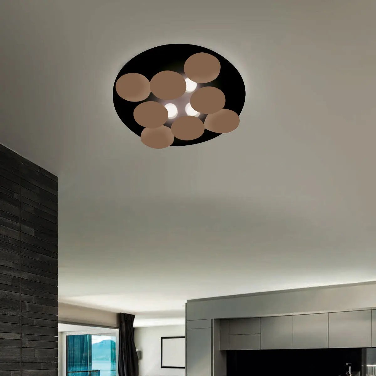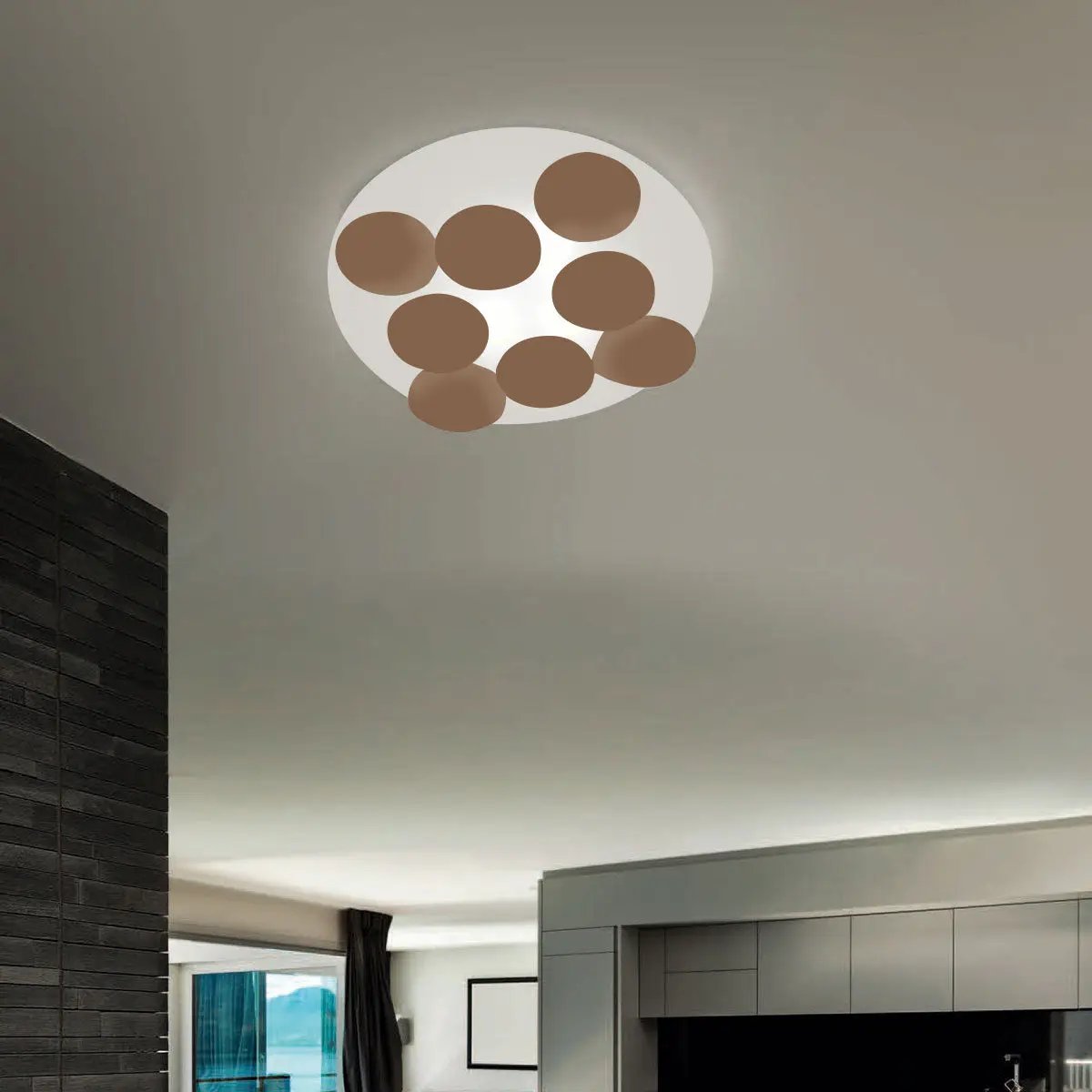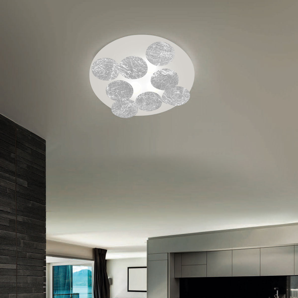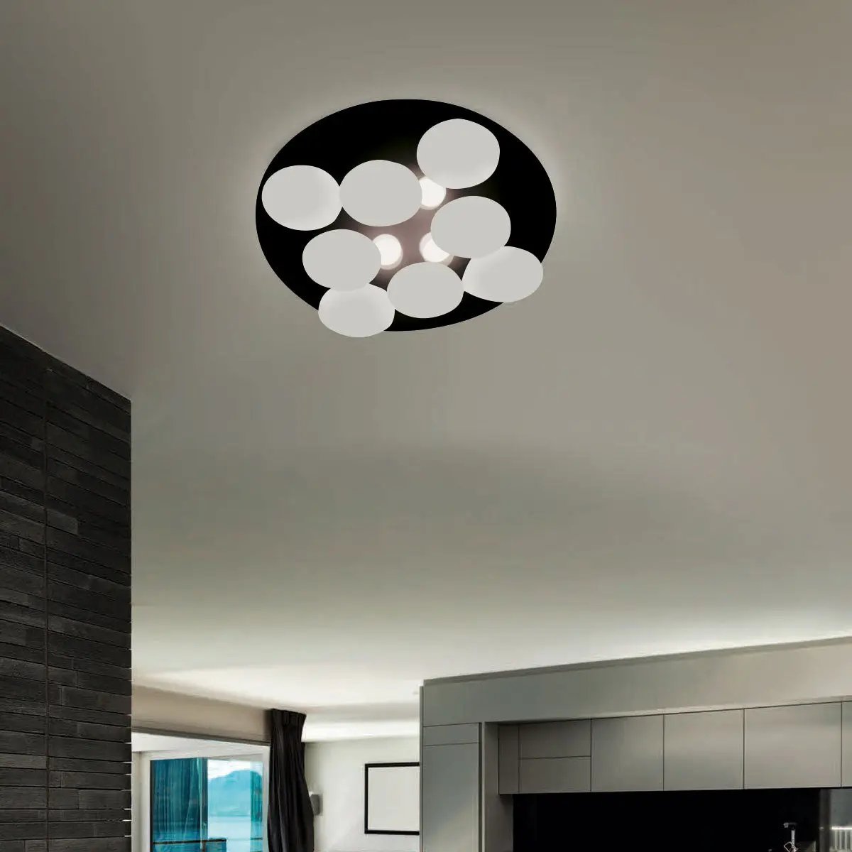 Die Deckenleuchte Nuvola von Braga besticht durch ihre weiche, harmonische Formgebung und futuristisch-minimalistische Linienführung. Acht runde Elemente unter dem Baldachin dienen nicht nur als beeindruckende Designelemente, sondern werfen auch einen Teil des Lichts nach oben zurück. Dies schafft eine wundervolle Mischung aus direktem und indirektem Licht, die angenehm hell und entspannend wirkt. Nuvola ist in den verschiedensten Farben erhältlich und somit eine exklusive Wahl für jeden Raum.