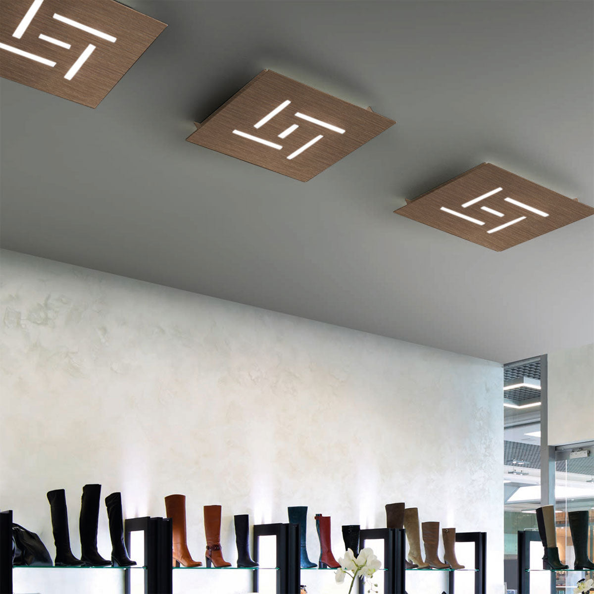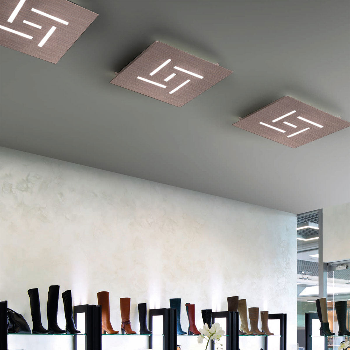 Erhältlich in den verschiedensten Farben. Oberfläche: weiß, schwarz, dunkles rost, taupe, blattsilber, blattgold, oxidiert, dunkelgrau, rosé gebürstet, bronze gebürstet, gold gebürstet, chrom, edelstahl ; Größe: 35x35cm, 19 Watt, 1450 Lumen; Farbtemperatur: 2700 Kelvin; dimmbar: ja, Phasendimmung; Energieeffizienzklasse: G