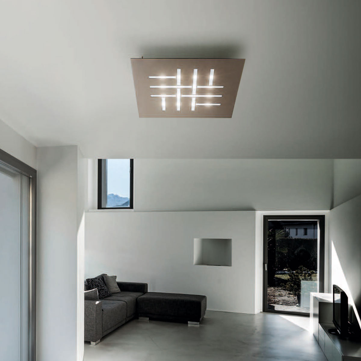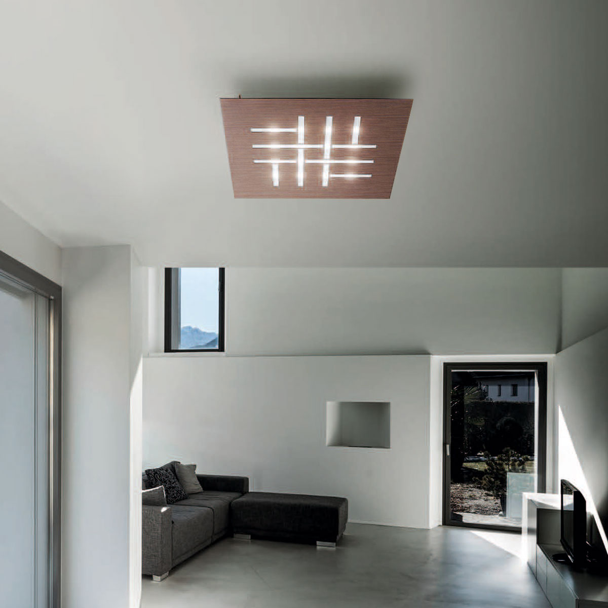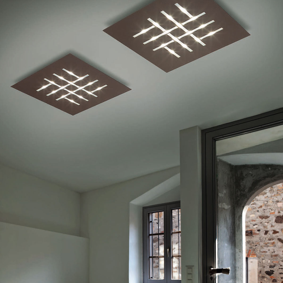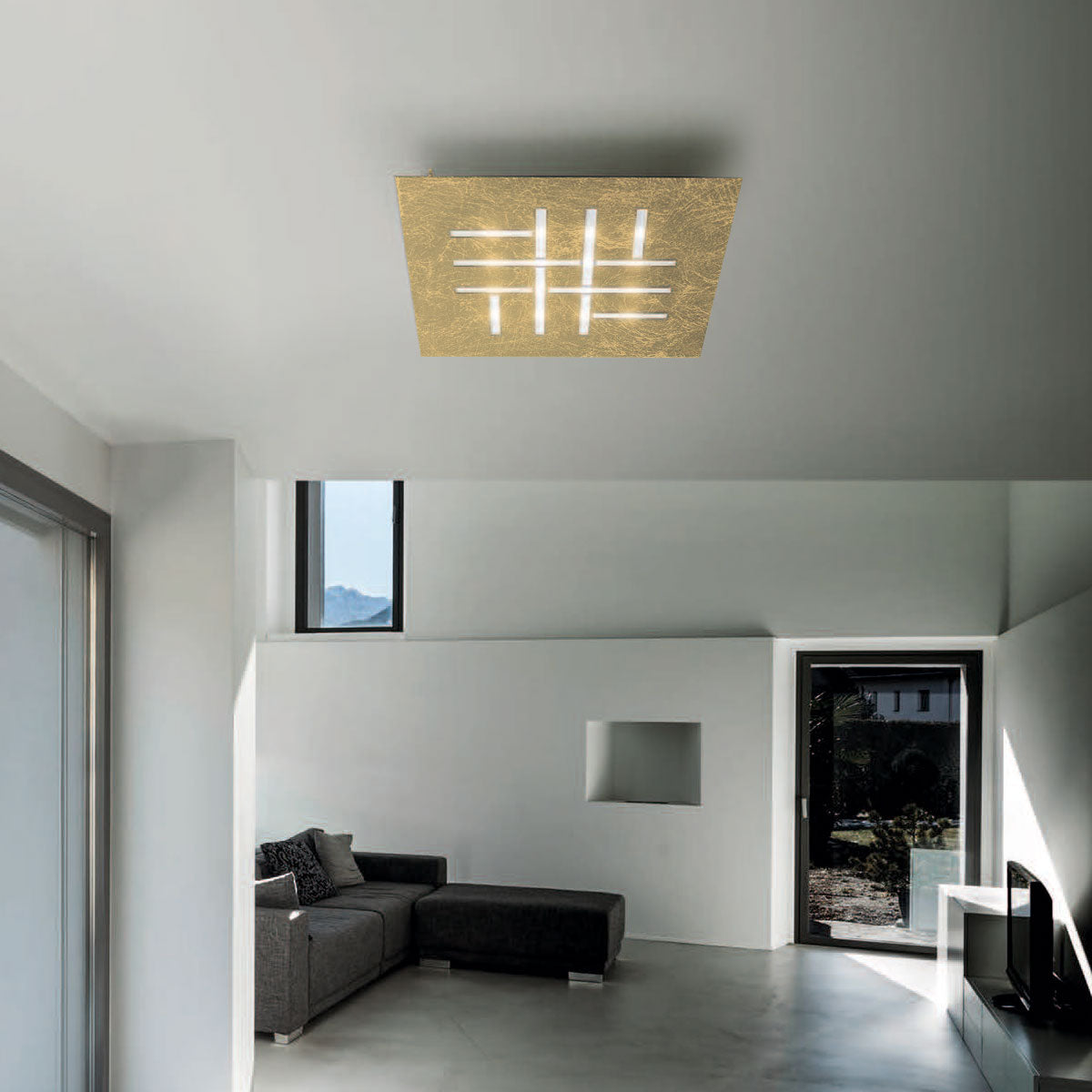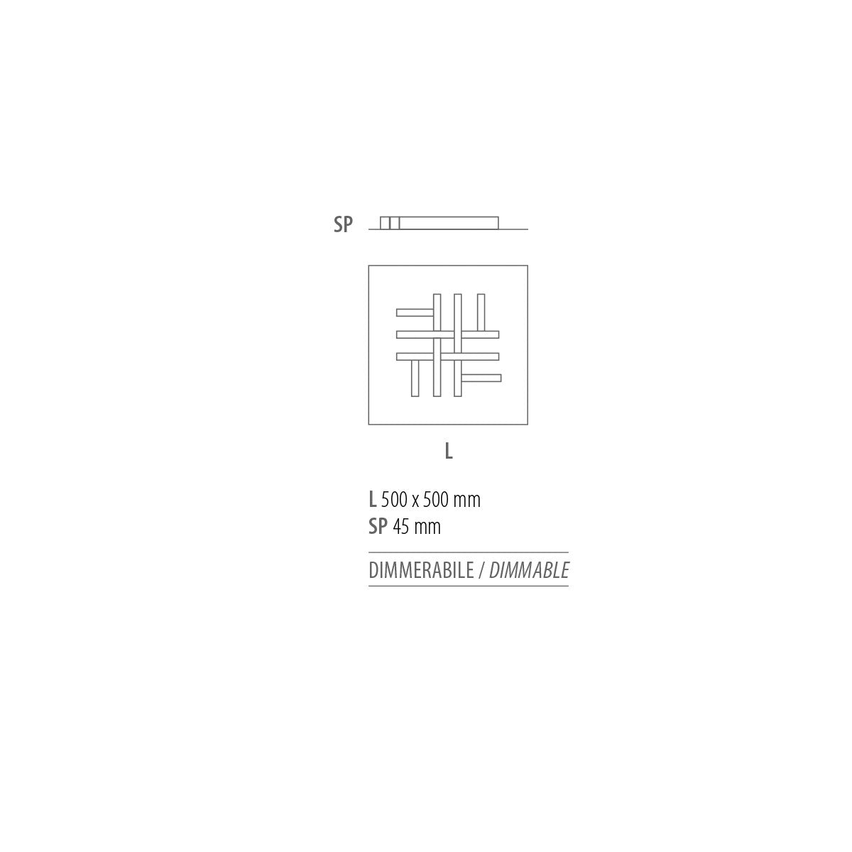 Erhältlich in den verschiedensten Farben. Oberfläche: weiß, schwarz, dunkles rost, taupe, blattsilber, blattgold, oxidiert, dunkelgrau, rosé gebürstet, bronze gebürstet, gold gebürstet, chrom, edelstahl ; Größe: 50x50cm, 35 Watt, 3000 Lumen; Farbtemperatur: 2700 Kelvin; dimmbar: ja, Phasendimmung; Energieeffizienzklasse: G