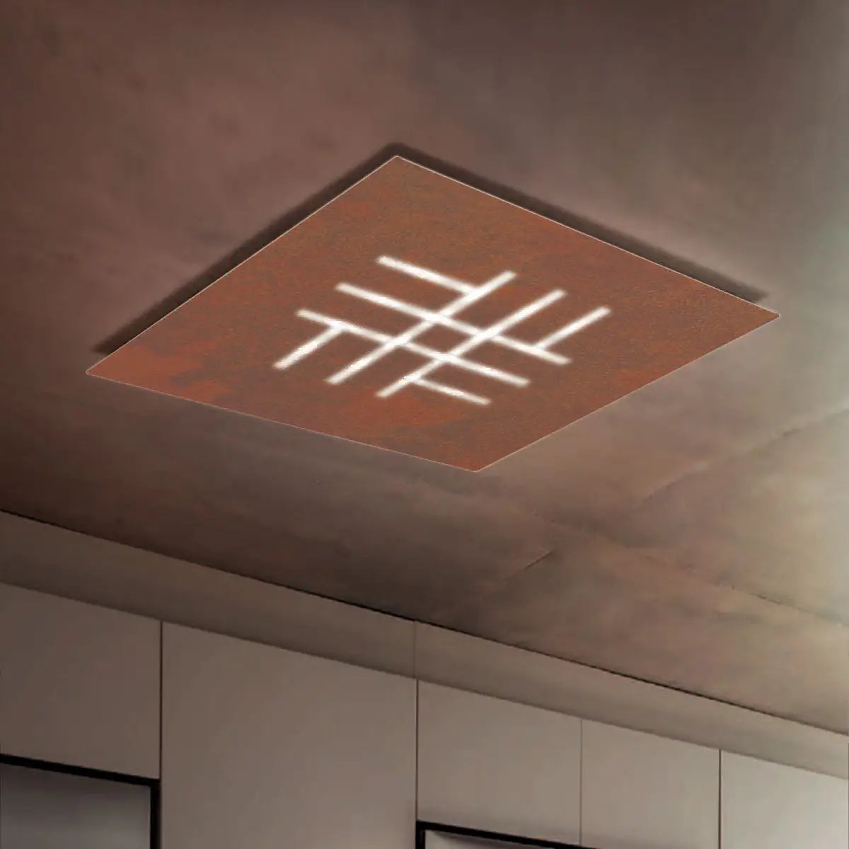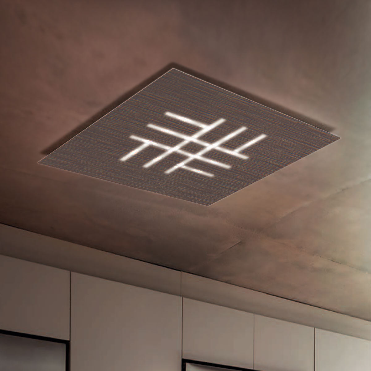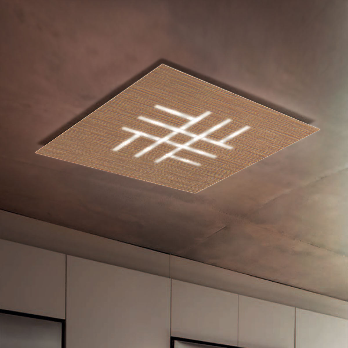 Erhältlich in den verschiedensten Farben. Oberfläche: weiß, schwarz, dunkles rost, taupe, blattsilber, blattgold, oxidiert, dunkelgrau, rosé gebürstet, bronze gebürstet, gold gebürstet, chrom, edelstahl ; Größe: 60x60cm, 35 Watt, 3000 Lumen; Farbtemperatur: 2700 Kelvin; dimmbar: ja, Phasendimmung; Energieeffizienzklasse: G