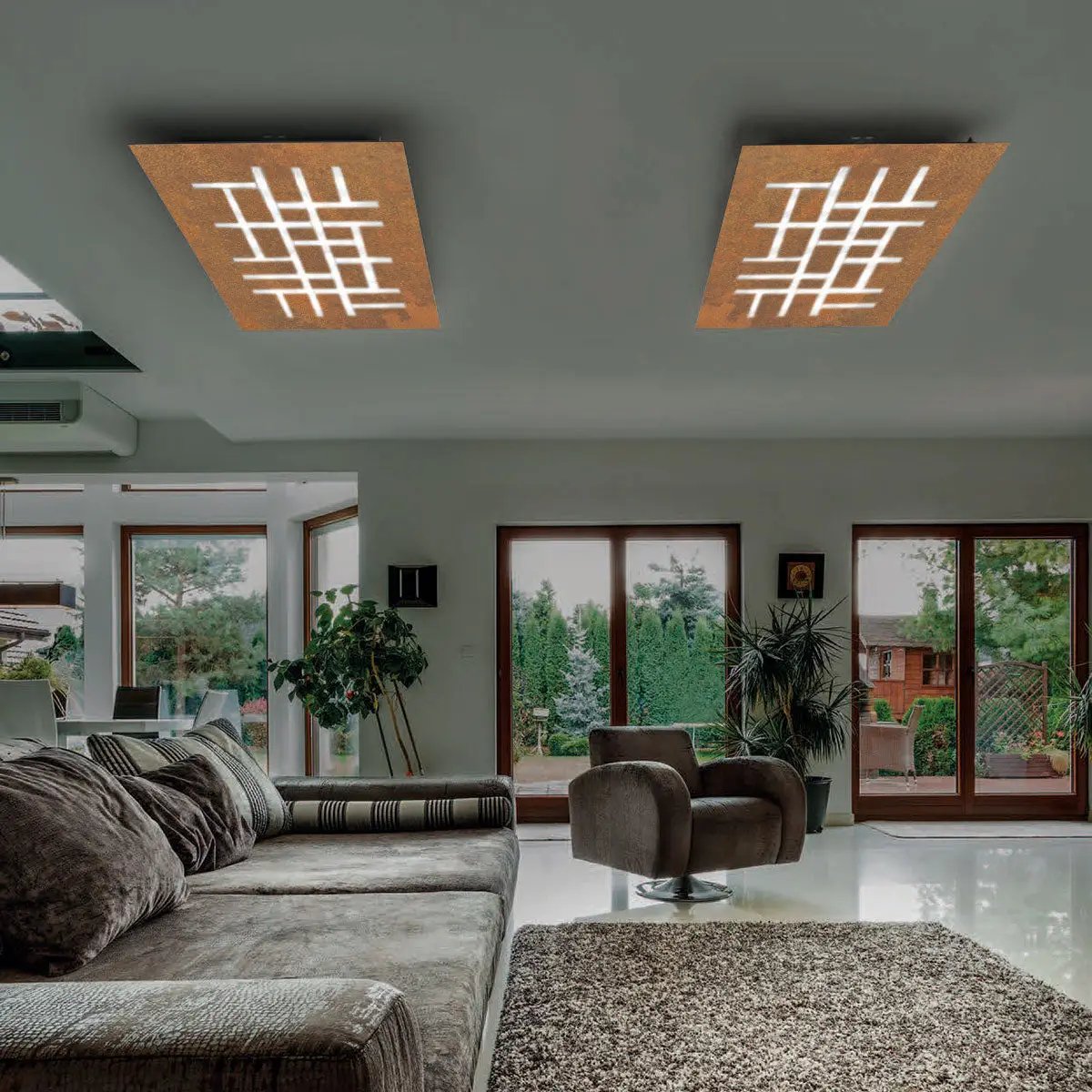 Erhältlich in den verschiedensten Farben. Oberfläche: weiß, schwarz, dunkles rost, taupe, blattsilber, blattgold, oxidiert, dunkelgrau, rosé gebürstet, bronze gebürstet, gold gebürstet, chrom, edelstahl ; Größe: 80x80cm, 70 Watt, 6000 Lumen; Farbtemperatur: 2700 Kelvin; dimmbar: ja, Phasendimmung; Energieeffizienzklasse: G