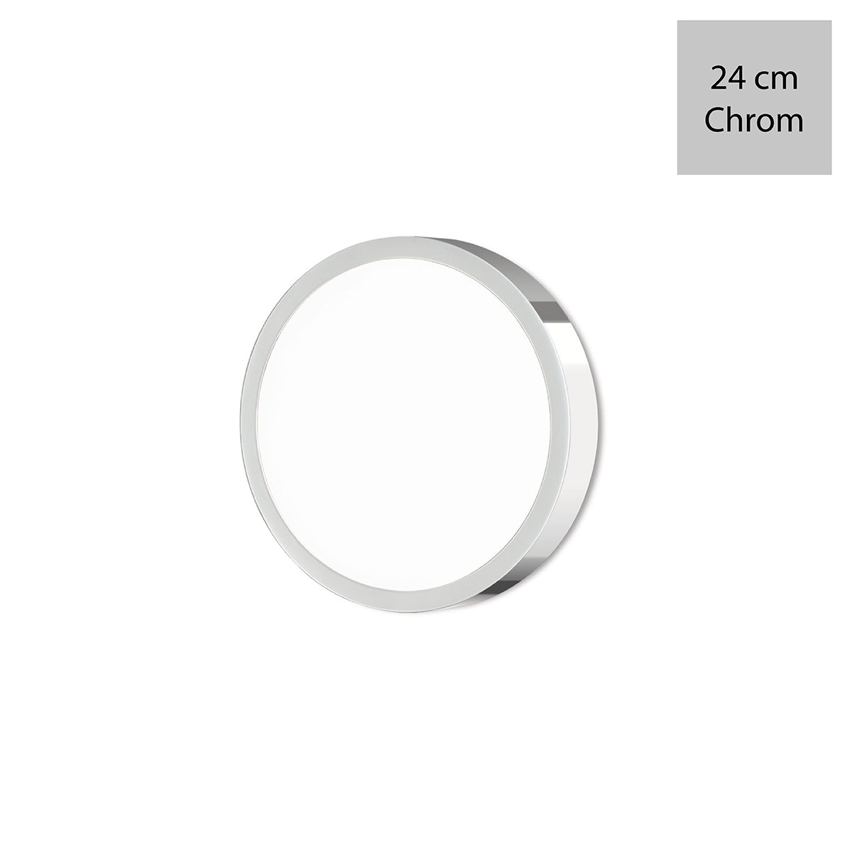 Druchmesser: 24 cm, Höhe: 2,4 cm, Oberflächen-Farbe: erhältlich in chrom und schwarz, Lichtstrom: 1980 Lumen, Watt: 24 Watt