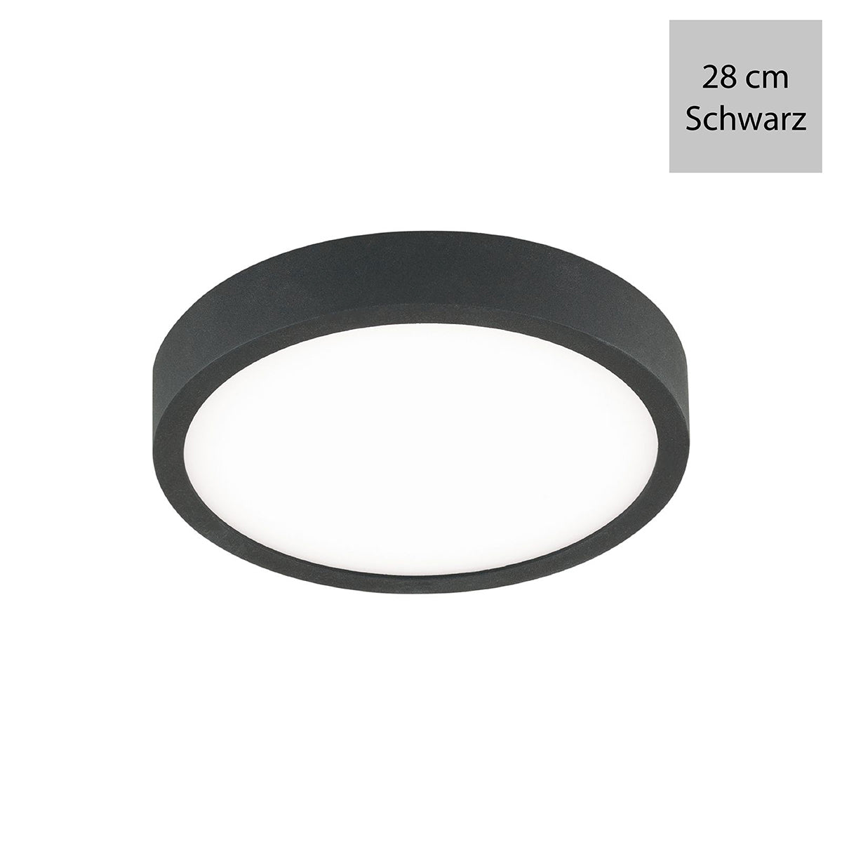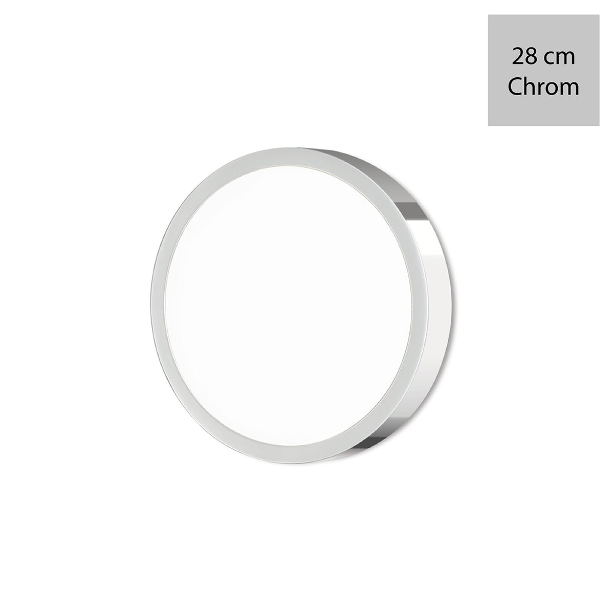 Druchmesser: 28 cm, Höhe: 2,4 cm, Oberflächen-Farbe: erhältlich in chrom und schwarz, Lichtstrom: 2300 Lumen, Watt: 28 Watt