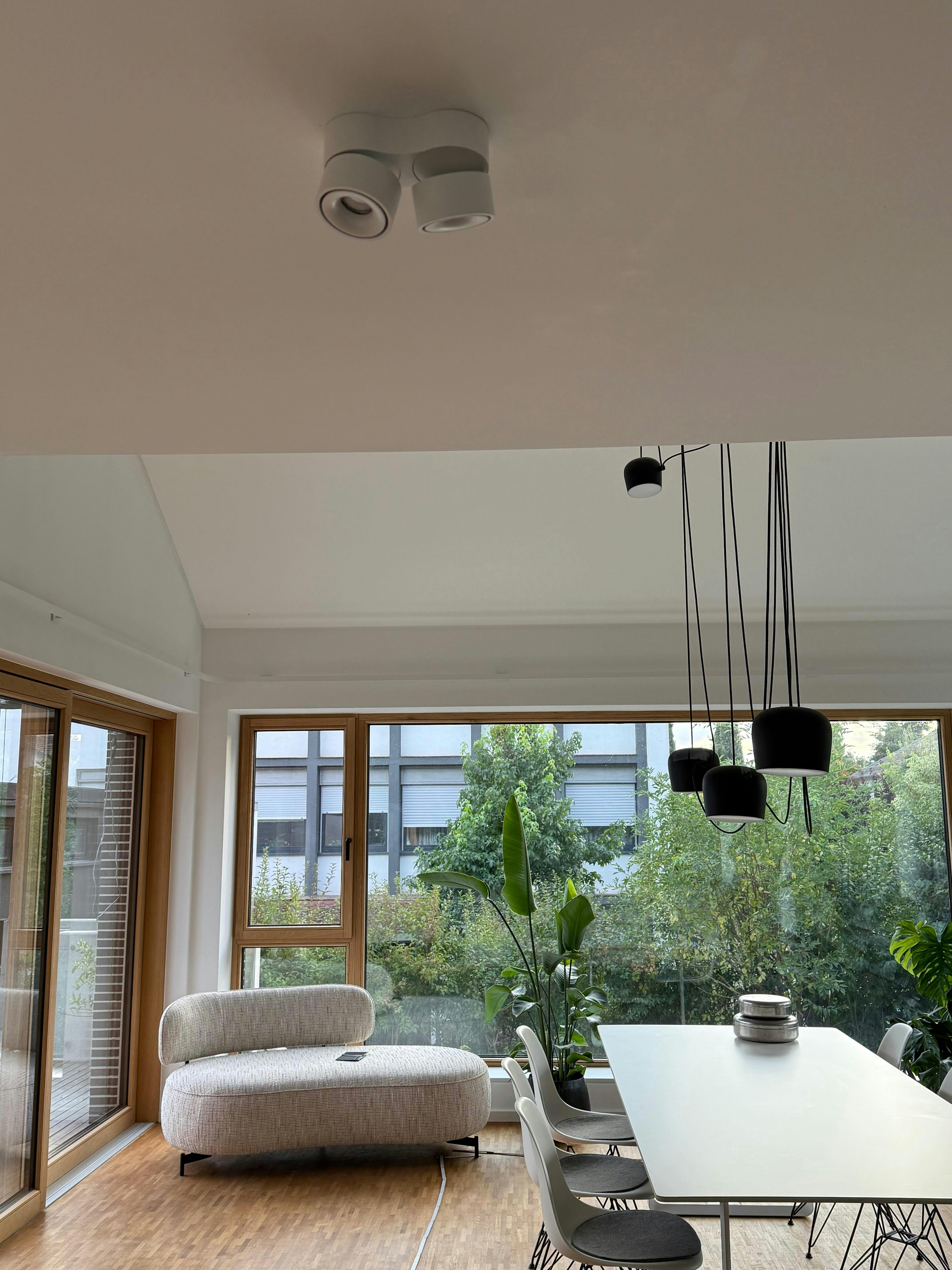 Clippo Duo Aufbaustrahler strahlt den Raum optimal aus: Dank der zwei dreh- und schwenkbaren Leuchtenköpfe kann die Ausrichtung des Lichts variiert werden. Dieser Strahler ist in den Oberflächen weiss/weiss und schwarz/schwarz erhältlich, optional ist der Dekorring in gold erhältlich siehe Zubehör. Durchmesser Leuchtenkopf: 10cm, Höhe: max. 15cm, Länge: 21cm, Abstrahlwinkel: 32Grad, Dimmbar: ja, Phasendimmung oder DALI, Lieferung erfolgt: inkl. fest verbautem LED-Leuchtmittel.