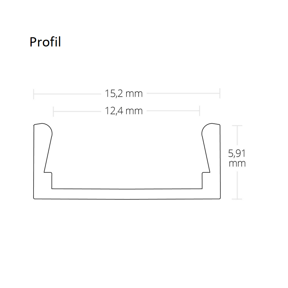 Profil: Länge: 200cm, Höhe: 6mm, Breite: 15mm, Einbautiefe: 15,2mm
