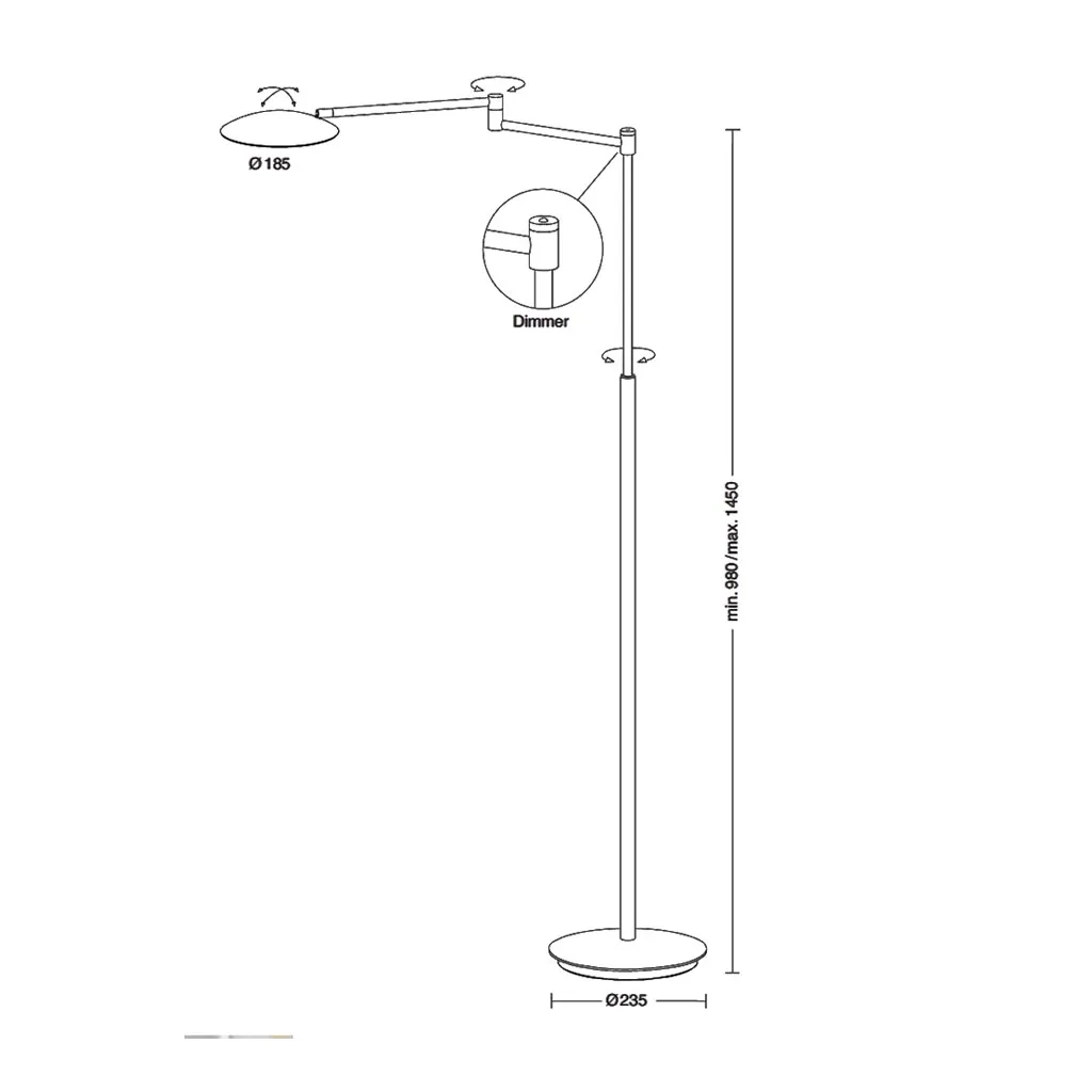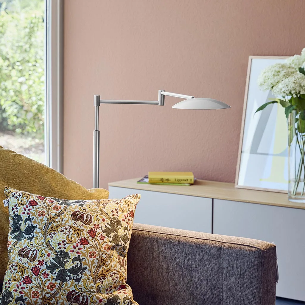 Dank der flexiblen Verstellmöglichkeiten lässt sich die Leuchte individuell an Ihre Sitz- oder Liegeposition anpassen. Der feinfühlige Dimmer ermöglicht es, die Lichtstärke stufenlos zu regulieren – von sanftem Stimmungslicht bis hin zu intensivem Leselicht. So passt sich die Lector jeder Situation und jeder Tageszeit perfekt an.