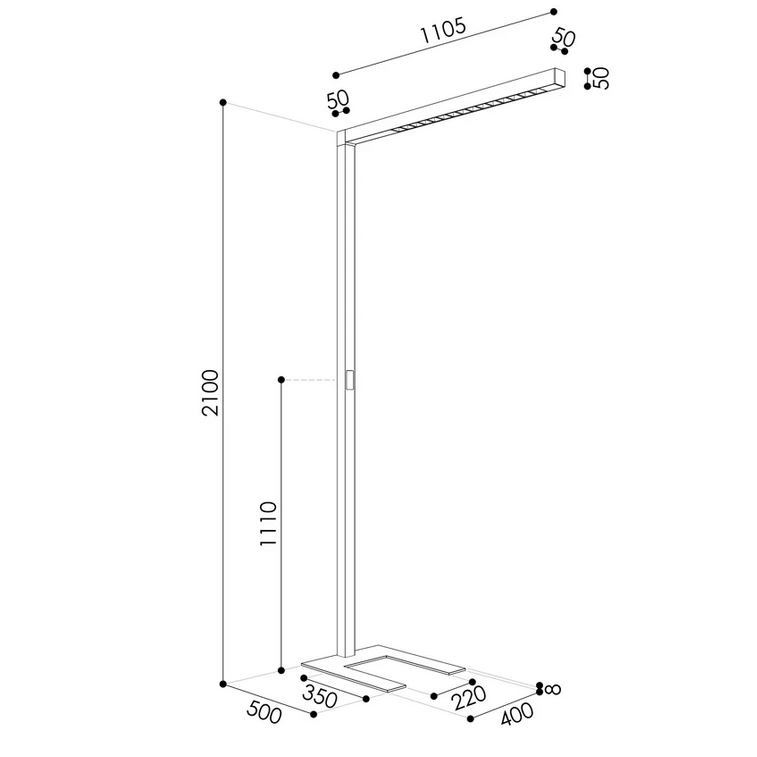 Höhe: 210cm, Länge: 110,5cm, Breite: 5cm, Leistung: 89W, Lumen: 10391, Farbtemperatur: 4000K, CRI: 90, Dimmbar: Touchpanel und Multisensor mit drei Tastern für Steuerung. Direkt/indirekt zusammen oder getrennt steuerbar. Mit integriertem Tageslicht- und Bewegungsmelder