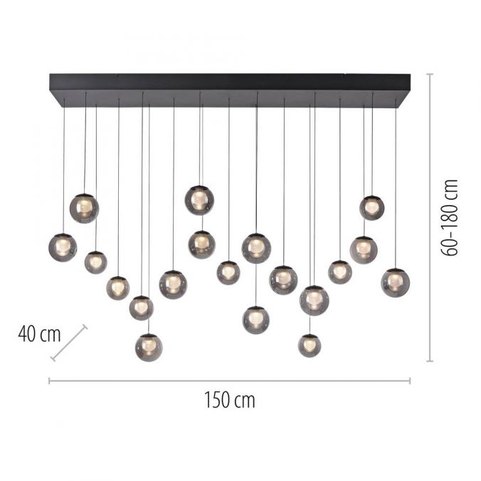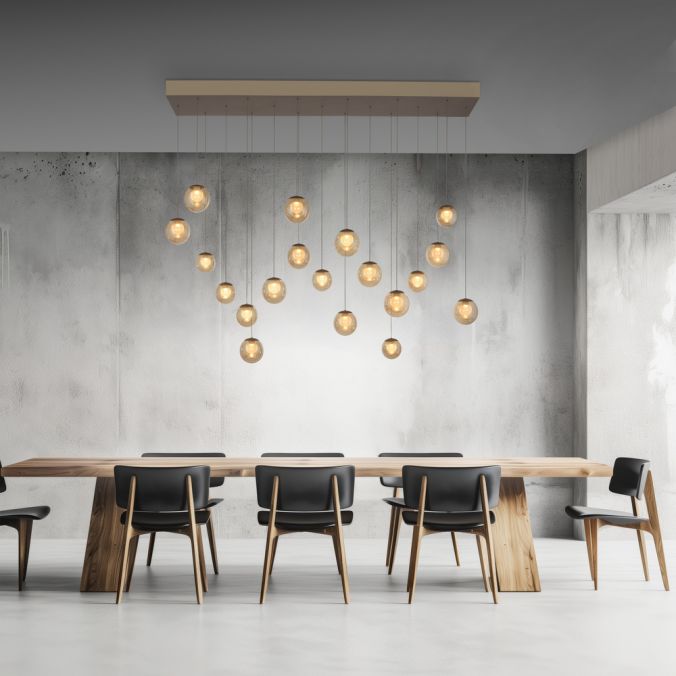 Die Pendelleuchte Popup ist ein echtes Highlight für jedes Zuhause. Ihr edles Designm und die schwebend wirkenden Glaskugeln verleihen jedem Raum eine moderne, zugleich warme Atmosphäre. Das Licht scheint sanft und gleichmäßig – perfekt, um Esstisch, Wohnbereich oder Küche stilvoll in Szene zu setzen. Mit ihrer eleganten Form und dem hochwertigen Finish wird diese Leuchte zum Blickfang, der Design und Gemütlichkeit harmonisch vereint. Ein Statement für alle, die modernes Licht mit zeitloser Eleganz lieben.