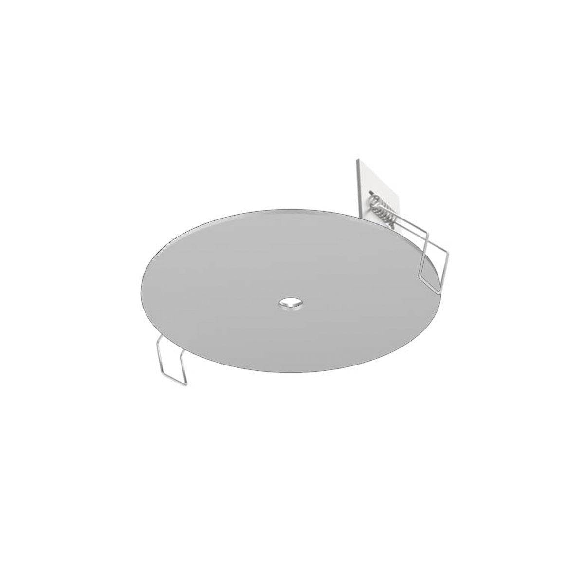 Einbaubaldachin Flat für Pendelleuchtenmontage um Kabel in der Decke mit Leuchtenkabel zu verbinden. Nur für den Innenbereich geeignet (IP20). Material: Eisen, Oberflächen-Farbe: erhältlich in schwarz matt und weiß matt, sowie in den Ausführungen: ohne Loch und mit Loch 6 mm, Durchmesser Scheibe: 8 cm, Höhe: 5,5 cm, Bohrloch 60-70mm