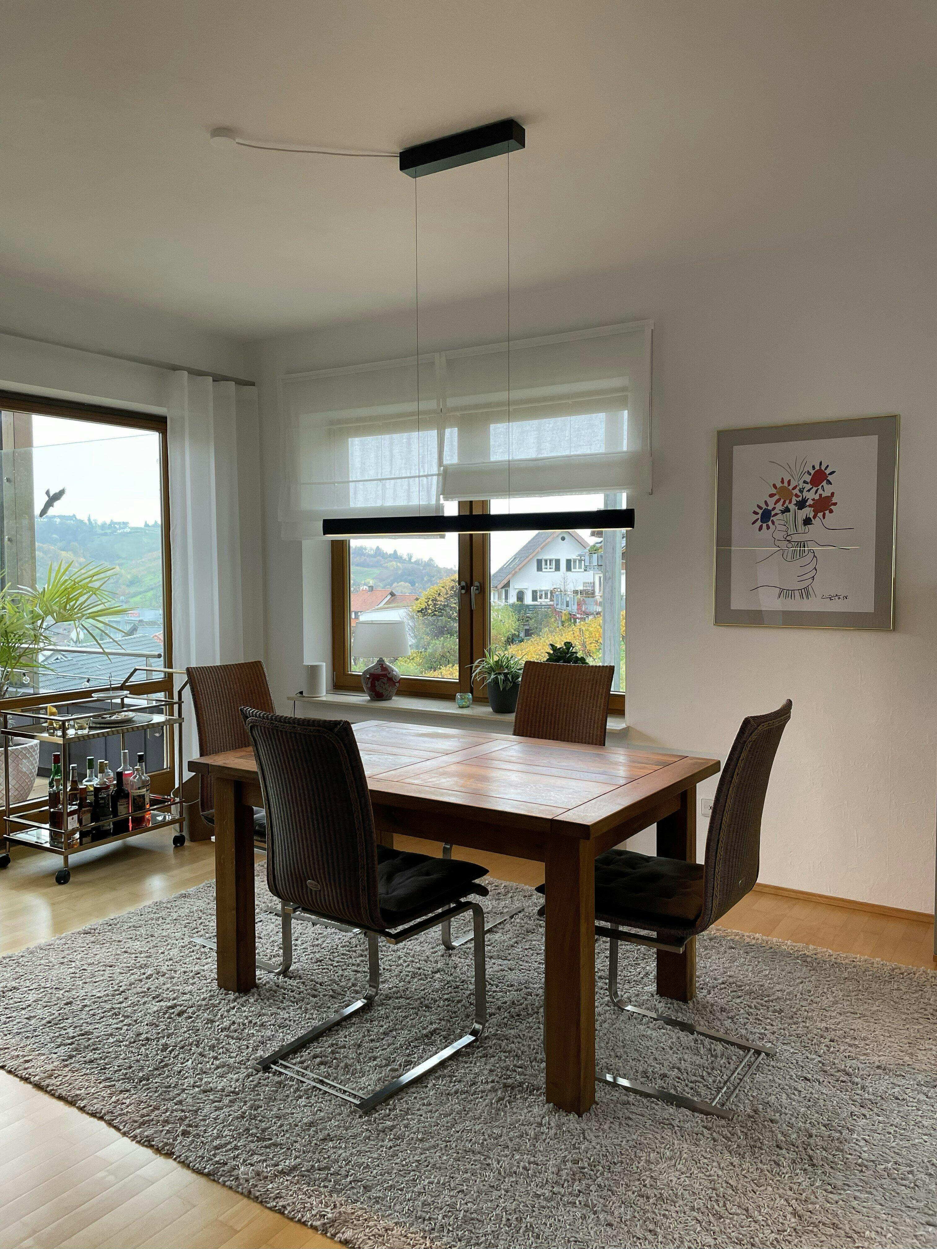 Stufenlos höhenverstellbare LED-Pendelleuchte Runa (Dim-to-warm) von Knapstein ist in den Längen 92cm, 112cm, 132cm und 152cm erhältlich. Mit der stufenlosen Höhenverstellung passt sie sich dem Wunsch der Kunden individuell an. Durch direkte Beleuchtung nach unten und indirekter Beleuchtung nach oben sorgt die Leuchte gleichzeitig für Raumlicht und gemütliches Licht beim Abendessen. Mit Gestensteuerung lässt sich das Ober- und Unterlicht getrennt voneinander schalten und dimmen und ist einstellbar über Gestensteuerung zwischen 2200 Kelvin bis 3000 Kelvin. Runa verfügt über eine Memory-Funktion: Die Leuchte merkt sich beim erneuten Anschalten die zuletzt genutzte Einstellung. Hinweis: Bei dieser Leuchte darf kein zusätzlicher Dimmer eingebaut sein, da die Leuchte über Gestensteuerung gedimmt wird.