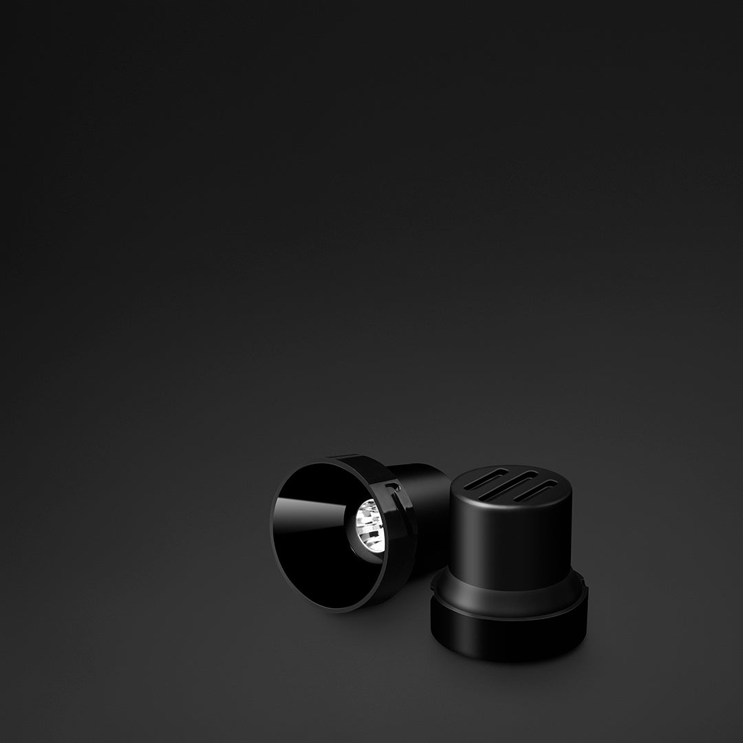 Die Deckeneinbauleuchte SHOT S steht für kompromisslose Minimalistik und maximale Lichtwirkung – verfeinert durch die innovative Invisible-Black-Technik. Im ausgeschalteten Zustand wirkt der Spot beinahe wie verschwunden: Die tiefschwarze Innenfläche nimmt sich optisch komplett zurück und verhindert störende Spiegelungen. Dadurch bleibt das Deckenbild absolut ruhig und hochwertig, ganz ohne sichtbare Lichtquelle oder technische Anmutung.