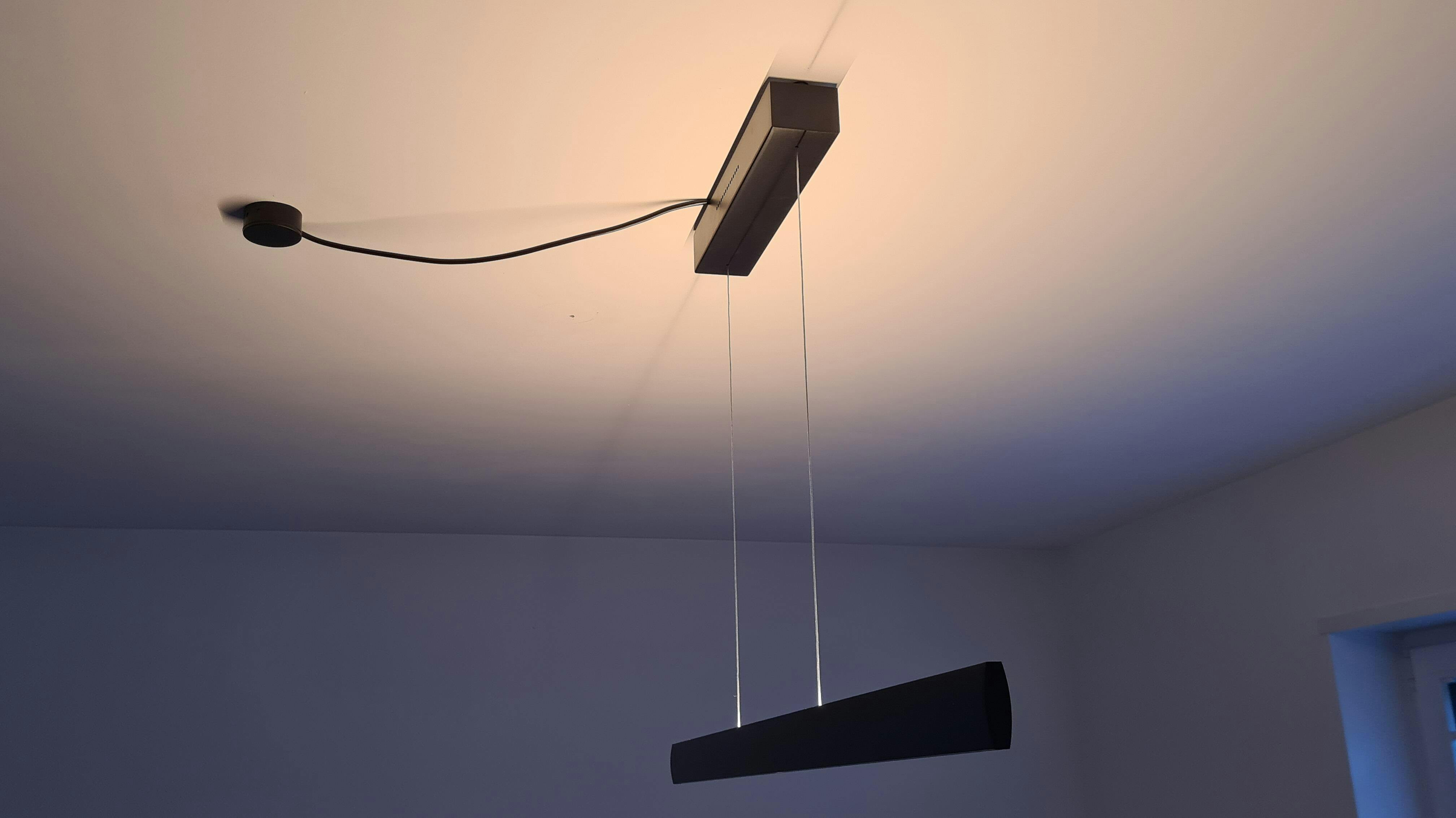 The Runa LED pendant light (dim-to-warm) from Knapstein is continuously height-adjustable and available in lengths of 92cm, 112cm, 132cm, and 152cm. Its stepless height adjustment allows it to be individually adapted to the customer's needs. With direct downward and indirect upward lighting, the light provides both ambient light and a cozy atmosphere for dinner. The uplight and downlight can be switched and dimmed independently using gesture control, and the color temperature can be adjusted between 2200 Kelvin and 3000 Kelvin. Runa features a memory function: the light remembers the last used setting when switched on again. Note: No additional dimmer should be installed with this light, as it is dimmed via gesture control.