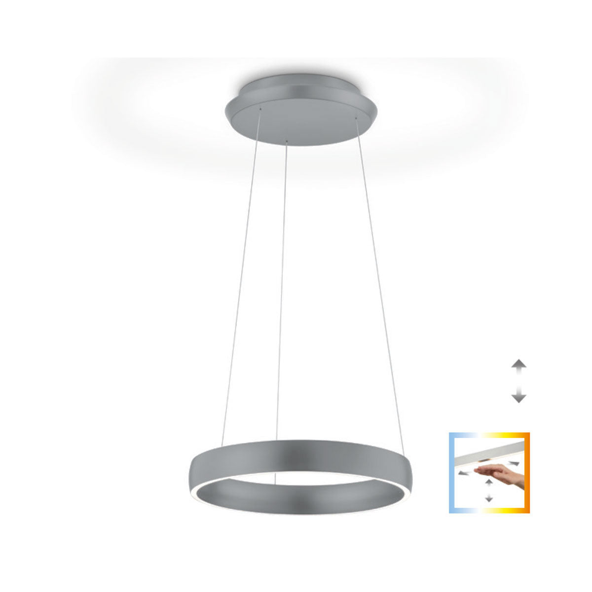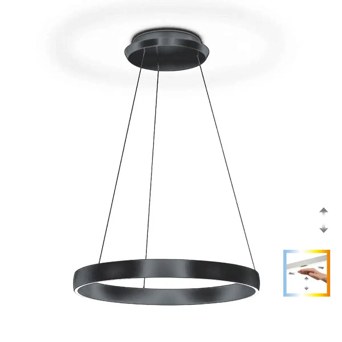 Output: 72W, lumen: 7850, color temperature: 2200K-3000K, length: 60cm, width: 60cm, height: adjustable 70-170cm, dimmable: yes, via gesture control, protection class: IP20, energy efficiency class: F