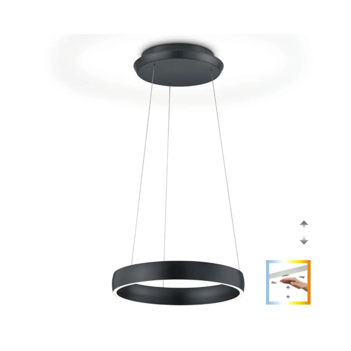 Output: 46W, lumen: 5000, color temperature: 2200K-3000K, length: 40cm, width: 40cm, height: adjustable 70-170cm, dimmable: yes, via gesture control, protection class: IP20, energy efficiency class: F