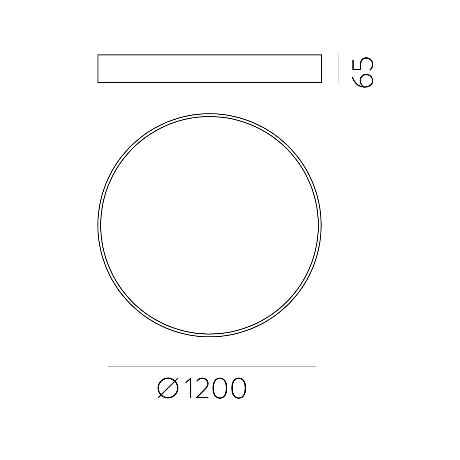 Ø120cm x 5cm, Leistung: 170W, Lumen: 13360, Farbtemperatur: 3000K / 4000K, Dimmbar: ja, über DALI / nein, bei on/off, Schutzart: IP20