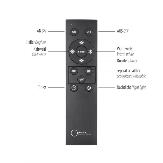 Besides its exclusive design, the lamp impresses with its exceptional ease of use. The included remote control allows for stepless adjustment of both brightness and light color – from a cozy warm light to a clear, neutral light. At the touch of a button, you can create the perfect lighting atmosphere for any moment. An integrated memory function, timer, and a discreet night light further enhance the user experience.