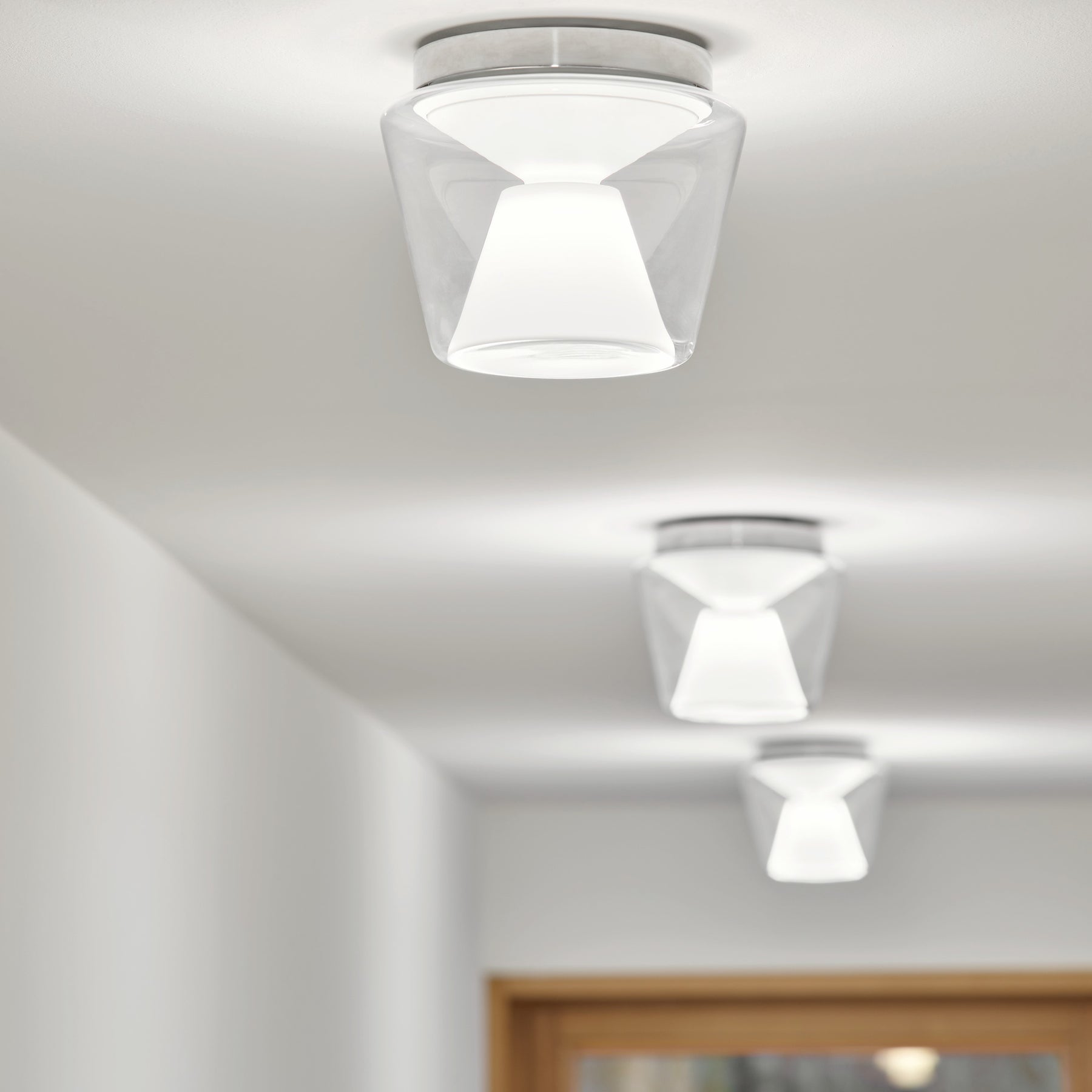 Ein besonderes Merkmal der Annex Deckenleuchte ist ihre Vielseitigkeit in der Lichtgestaltung. Je nach gewähltem Reflektor im Inneren der Leuchte lässt sich die Lichtwirkung gezielt anpassen. Während ein opaler Reflektor für gleichmäßiges, blendfreies Licht sorgt, erzeugt ein polierter Aluminiumreflektor eine weichere, raumfüllende Ausleuchtung. Dadurch eignet sich die Leuchte sowohl für den Einsatz in Wohnräumen als auch in anspruchsvollen Objektbereichen.