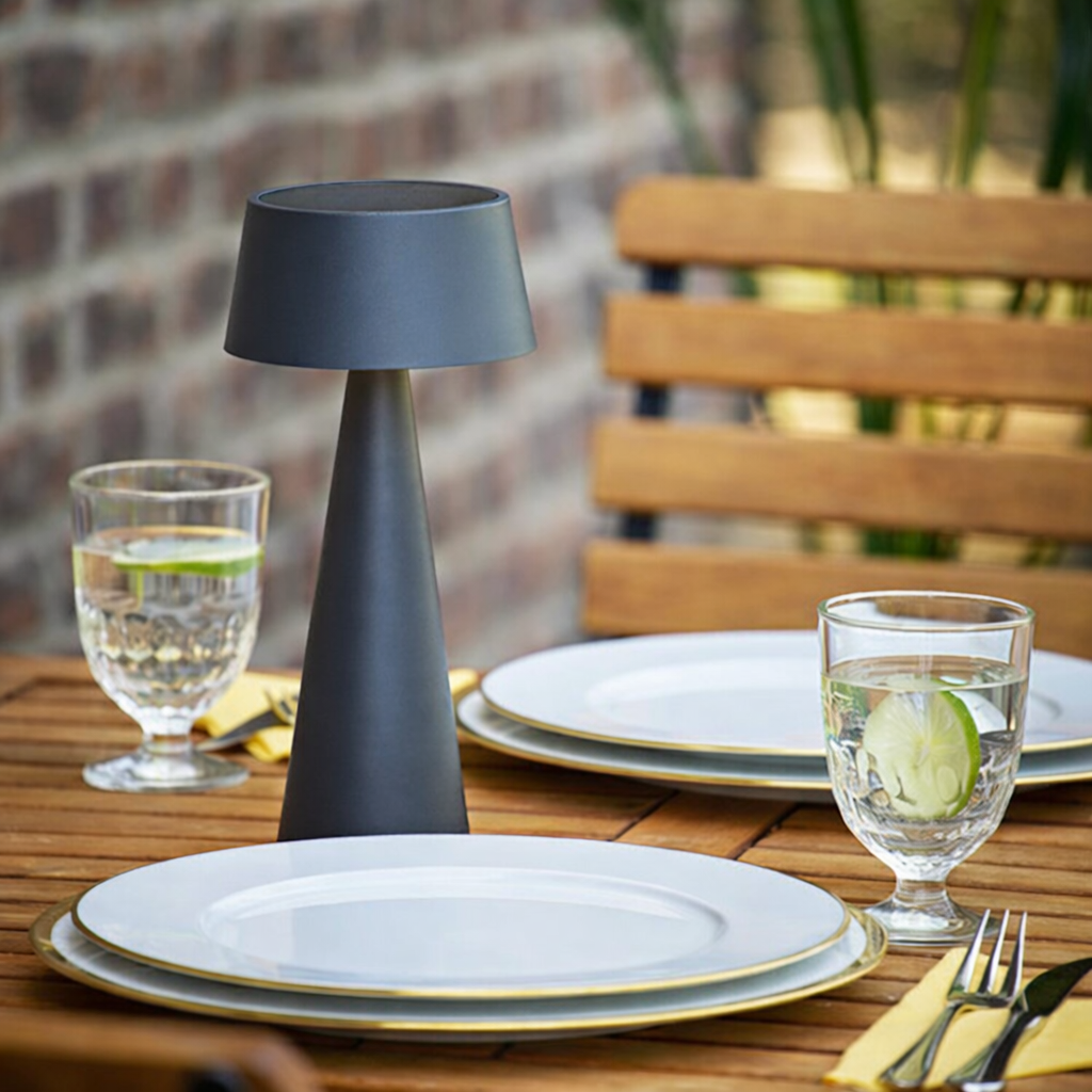 Ganz ohne Kabel fügt sich die elegante Tischleuchte mühelos in jede Umgebung ein. Sie wirkt leicht, reduziert und dennoch hochwertig – ein echtes Design-Statement für alle, die Wert auf Ästhetik und Funktion legen. Durch ihre klare Formensprache passt sie sowohl zu modernen Outdoor-Lounges als auch zu klassischen Wohnbereichen und setzt überall stilvolle Lichtakzente.