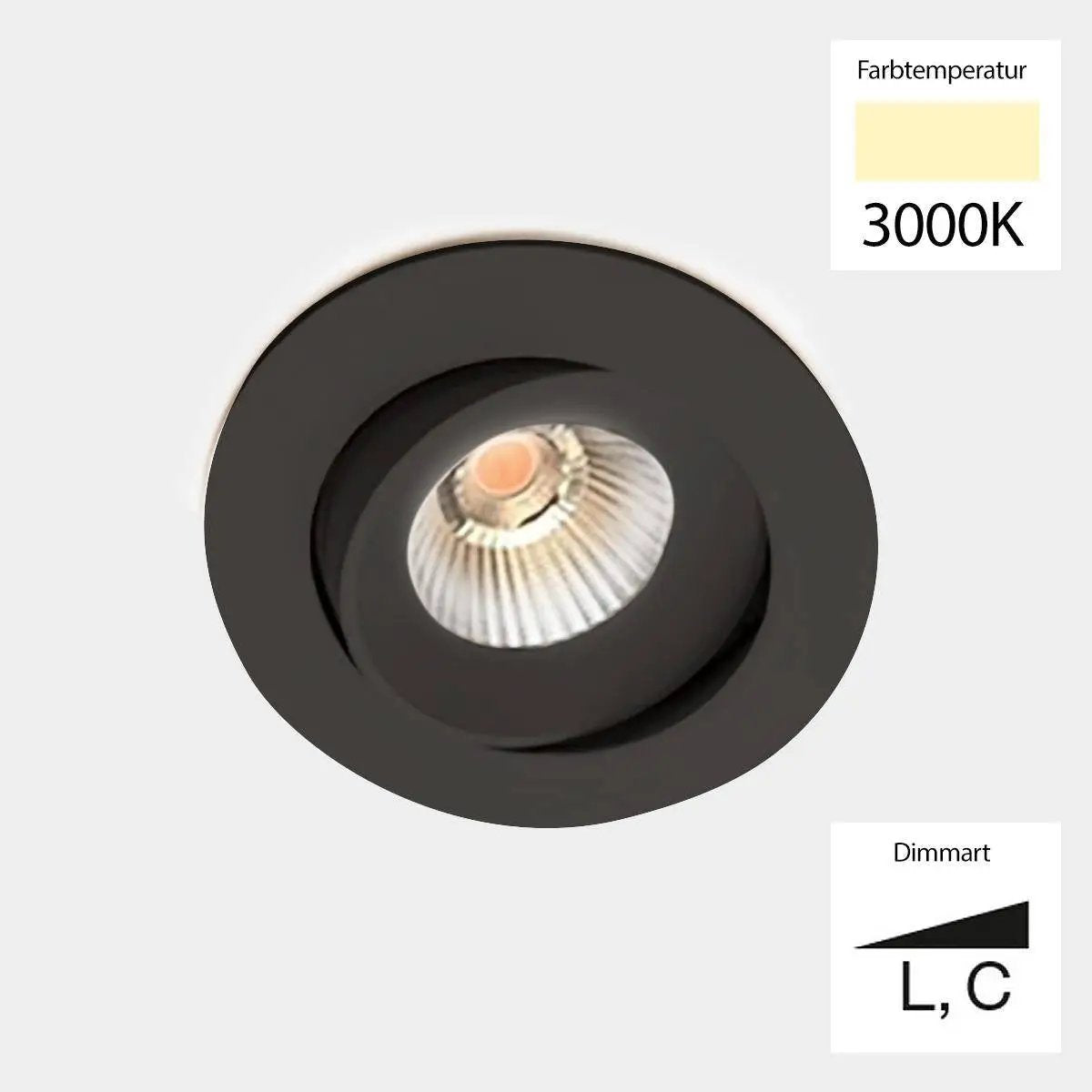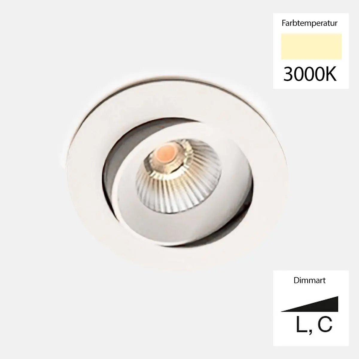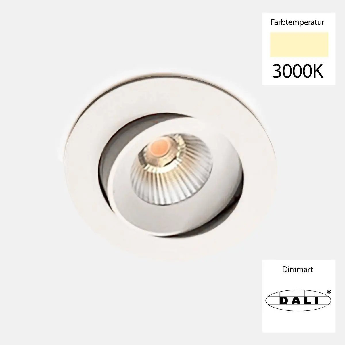 Power: 10W, Lumens: 760, Color temperature: dim-to-warm 3000K-1800K, Mounting hole diameter: 83mm , Beam angle: 36°, Diameter: 9.5cm, Height: 4.7cm, Installation depth: 5.9cm, Dimmable: yes, via phase dimming or DALI, Protection class: IP44, 250mA, (forward voltage 36V) CRI >95 Energy efficiency class: G