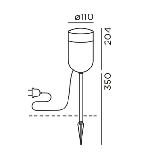 Color temperature: 2700K, Lumens: 834, Power: 15W, Dimmable: via phase-cut dimmer, Diameter of lamp head: 11cm, Total height: 55cm, Protection class: IP65, Delivery includes 3m power cord with safety plug, ready for connection, portable.