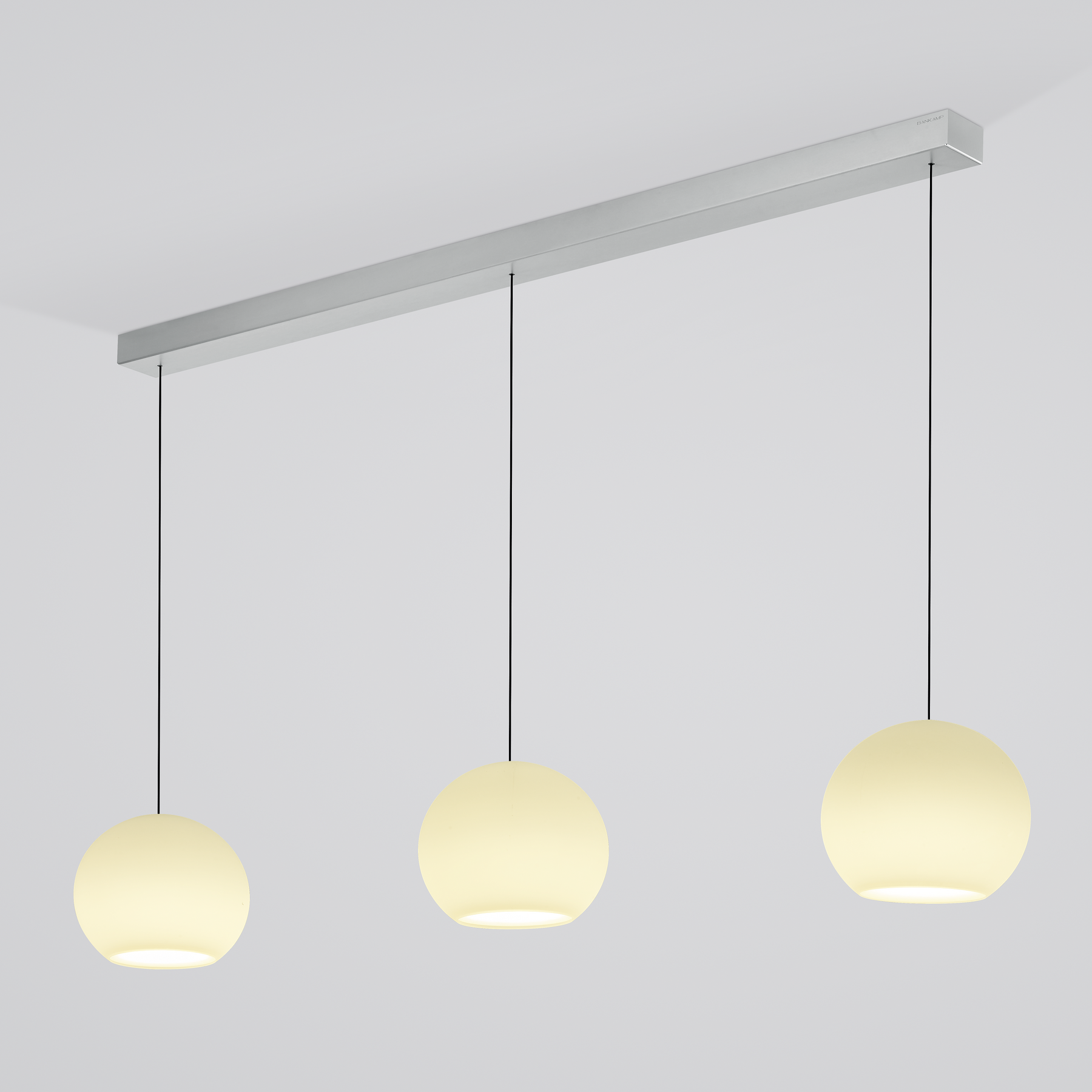 Der schlanke Baldachin ist wahlweise in Aluminium oder Schwarz erhältlich und setzt einen dezenten, stilvollen Akzent an der Decke. Er fügt sich mühelos in moderne Interieurs ein und lässt die Leuchtenkörper optisch schweben. Durch die lineare Anordnung entsteht ein ruhiges, architektonisches Gesamtbild, das jedem Raum eine hochwertige Note verleiht.
