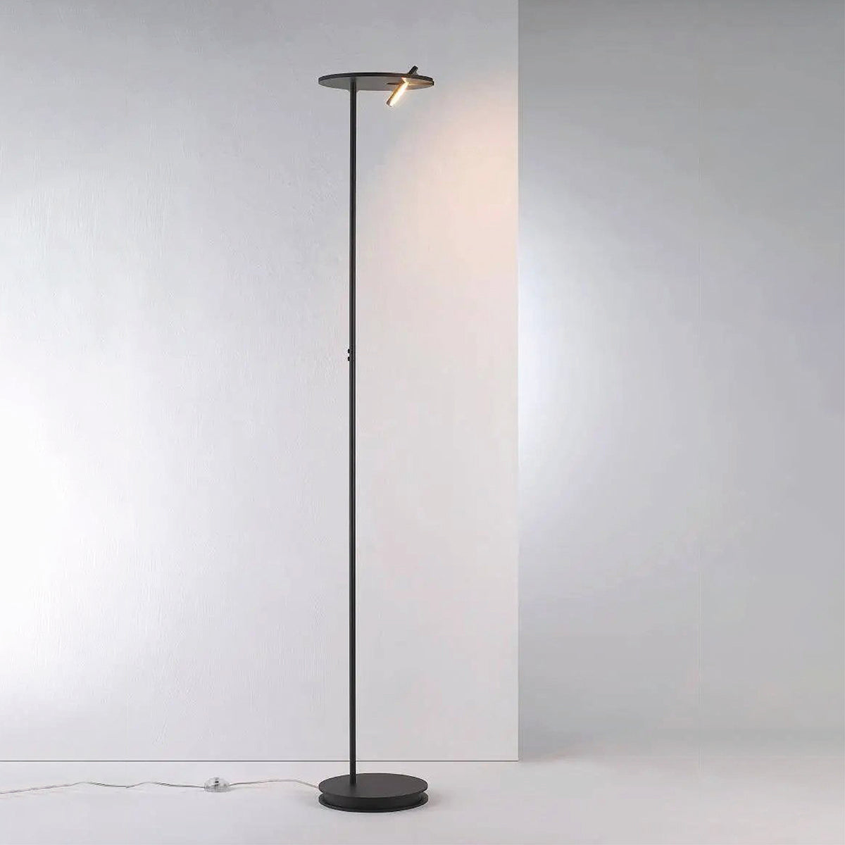 Le lampadaire Yoyo séduit par sa flexibilité, sa technologie de pointe et sa fabrication de haute qualité. L'éclairage d'ambiance et la lampe de lecture s'allument et s'éteignent indépendamment grâce à deux variateurs tactiles. L'éclairage d'ambiance pivote à 350° et la lampe de lecture à 300°. La lampe dispose d'un mode veille avec interrupteur au pied sur le cordon d'alimentation. Le lampadaire Yoyo est disponible en aluminium, noir et bronze.