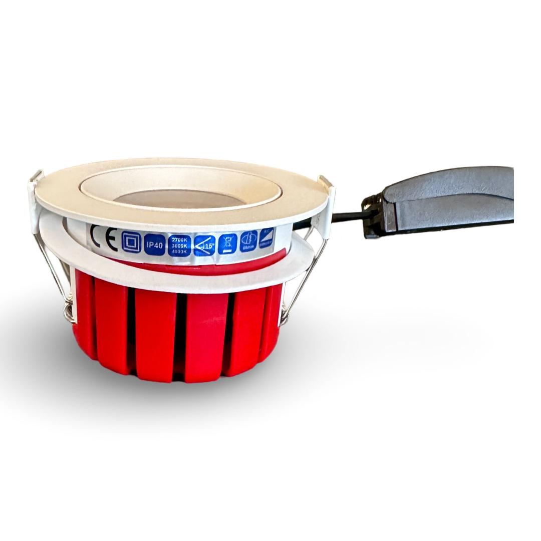 Diamètre de la tête de lampe : 8 cm, hauteur : 4,8 cm, profondeur d’encastrement : 4,5 cm, diamètre de découpe au plafond : 6,8 cm