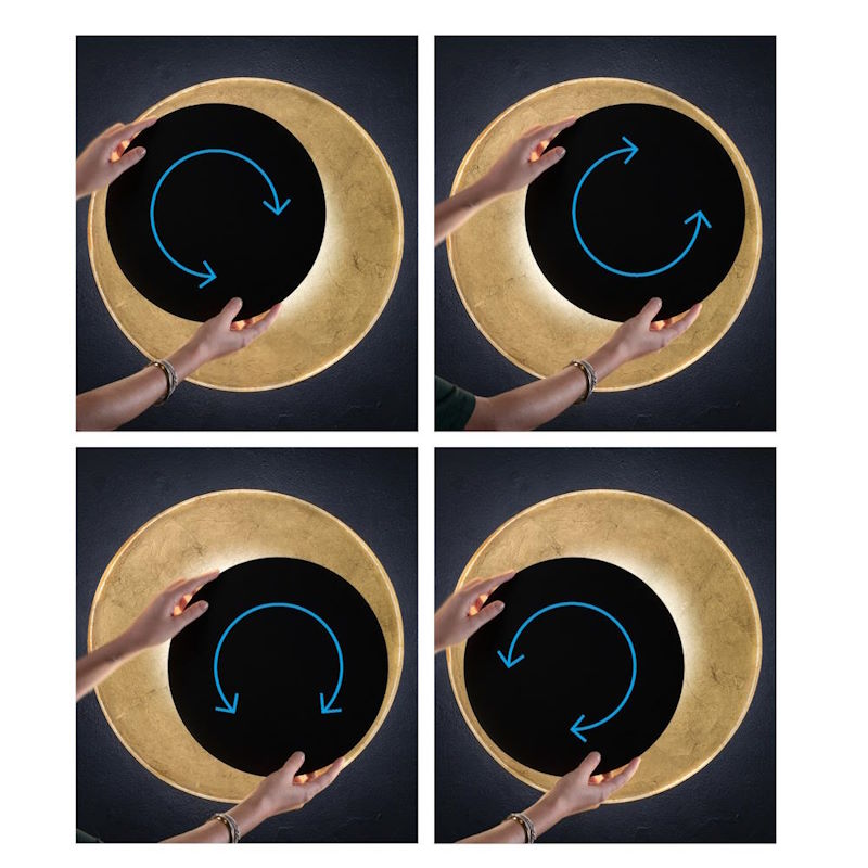 Ein echtes Highlight ist die magnetische Scheibe in der Mitte, die sich verschieben lässt. Dadurch können wir das Design immer wieder verändern, was richtig Spaß macht und die Leuchte sehr vielseitig macht.