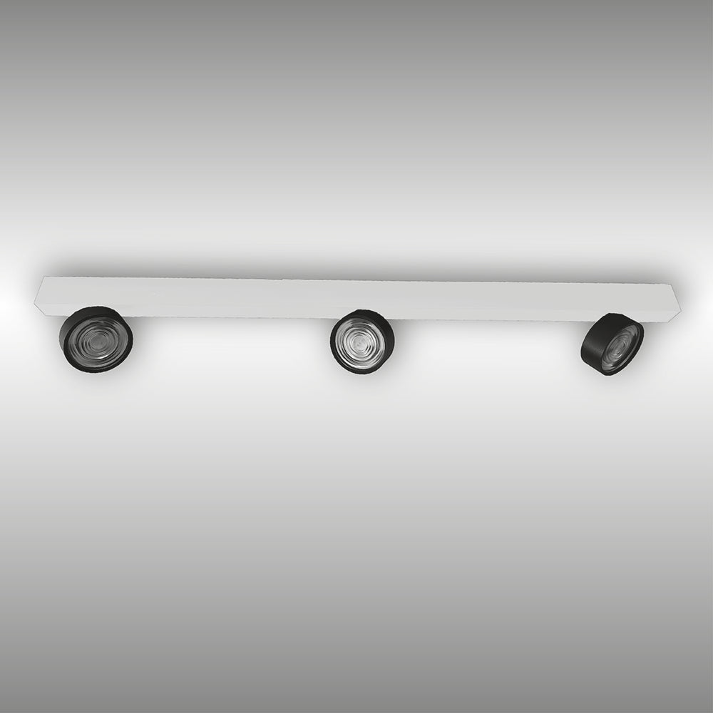 Plafonnier LED orientable à 3 lumières avec lentille en plastique de haute qualité, rotation à 350° et pivotement à 90°. Le luminaire est disponible en noir et blanc. Les spots en saillie assortis sont disponibles en noir, blanc, cuivre, or mat, chrome poli et chrome mat. Caractéristiques techniques : Température de couleur : 2 700 Kelvin (blanc chaud extra), flux lumineux : 3 x 1 200 lumens, dimensions du plafonnier : longueur : 100 cm, largeur : 3,8 cm, hauteur : 5 cm, diamètre de la tête d’éclairage : 9,5 cm, hauteur maximale : 13 cm, source lumineuse : 3 LED de 13 W, 230 V avec driver, angle de faisceau : 38°, IRC > 90, dimmable : oui, avec convertisseur triac, livré avec : source lumineuse LED préinstallée (remplaçable par un électricien qualifié).