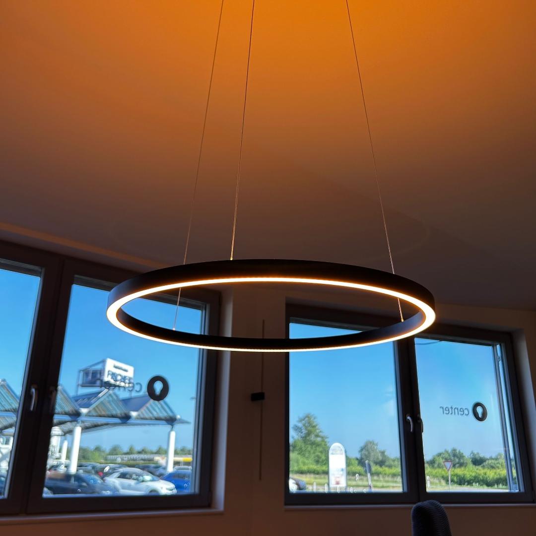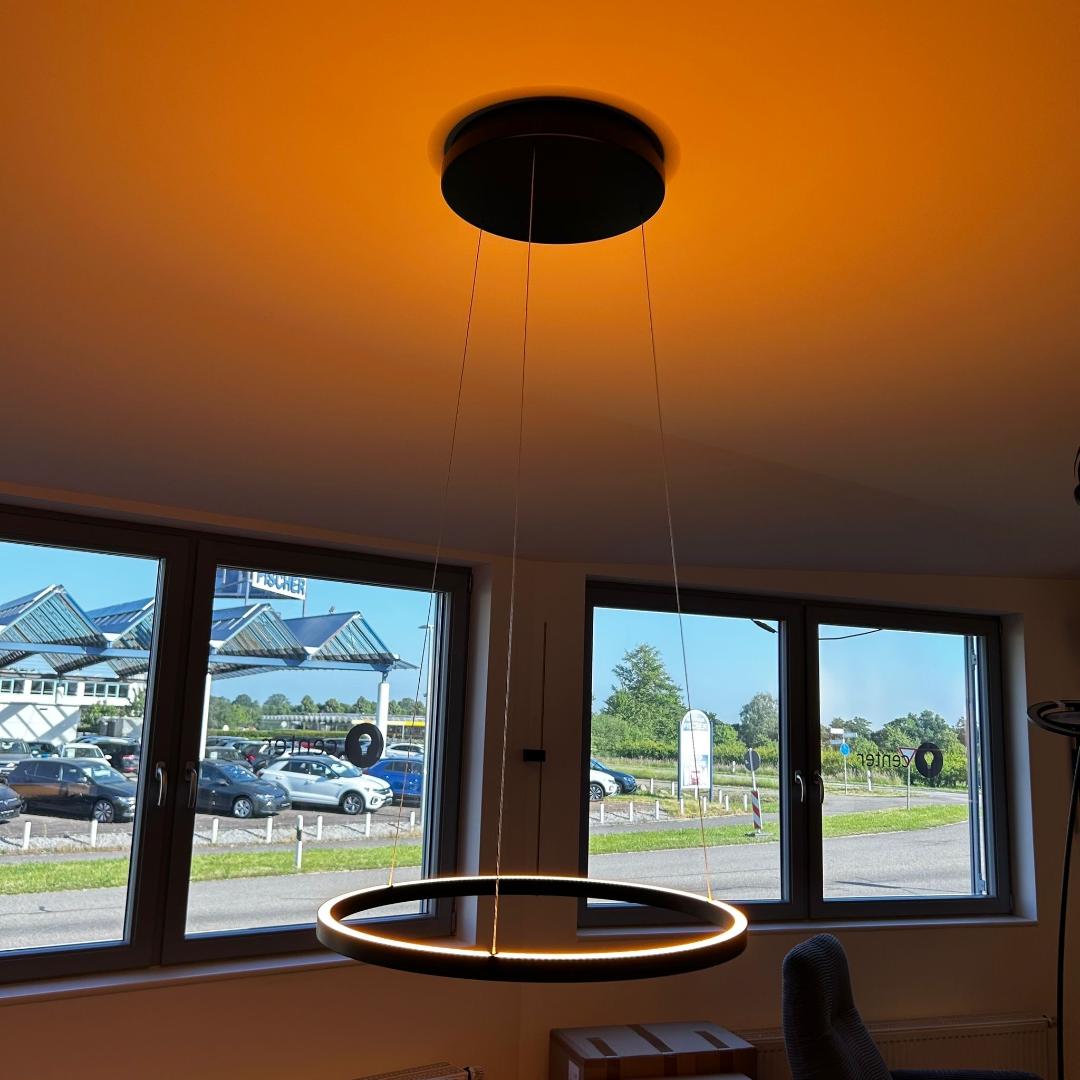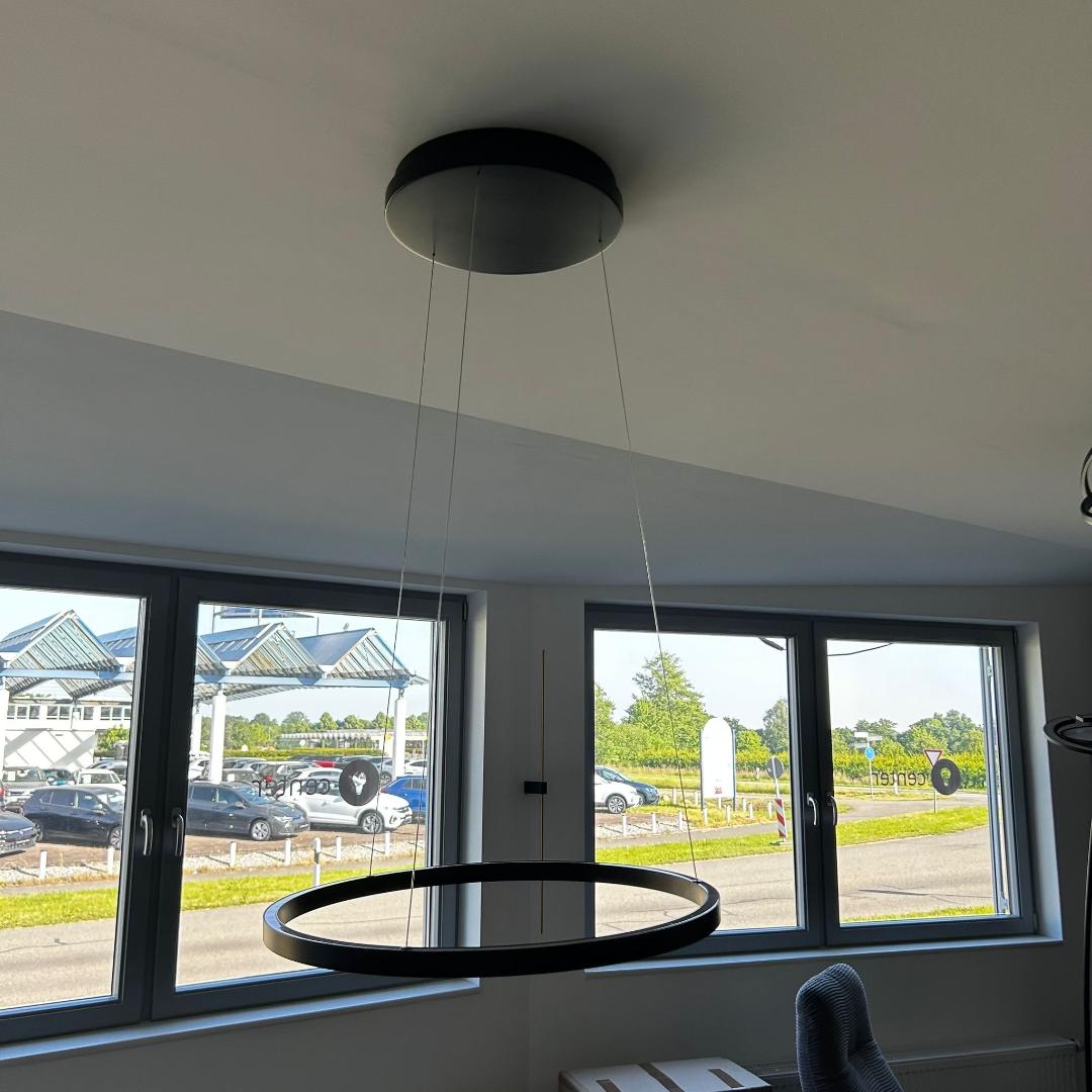 Modèle d'exposition. Grâce à son réglage en hauteur progressif et à sa fonction Blanc Dynamique, ce luminaire s'adapte à vos envies. L'éclairage direct vers le bas et indirect vers le haut crée une ambiance chaleureuse et conviviale, idéale pour un dîner. Les éclairages supérieur et inférieur sont réglables et modulables indépendamment par simple geste. Lisa dispose d'une fonction mémoire : le dernier réglage utilisé est conservé lors de la prochaine utilisation. Même les plafonds inclinés ne posent aucun problème : les supports de levage sont réglables individuellement. La rosace magnétique assure une installation épurée : aucune vis n'est visible. Remarque : Ce luminaire ne nécessite pas d'interrupteur variateur supplémentaire, car son intensité lumineuse est réglable par simple geste.