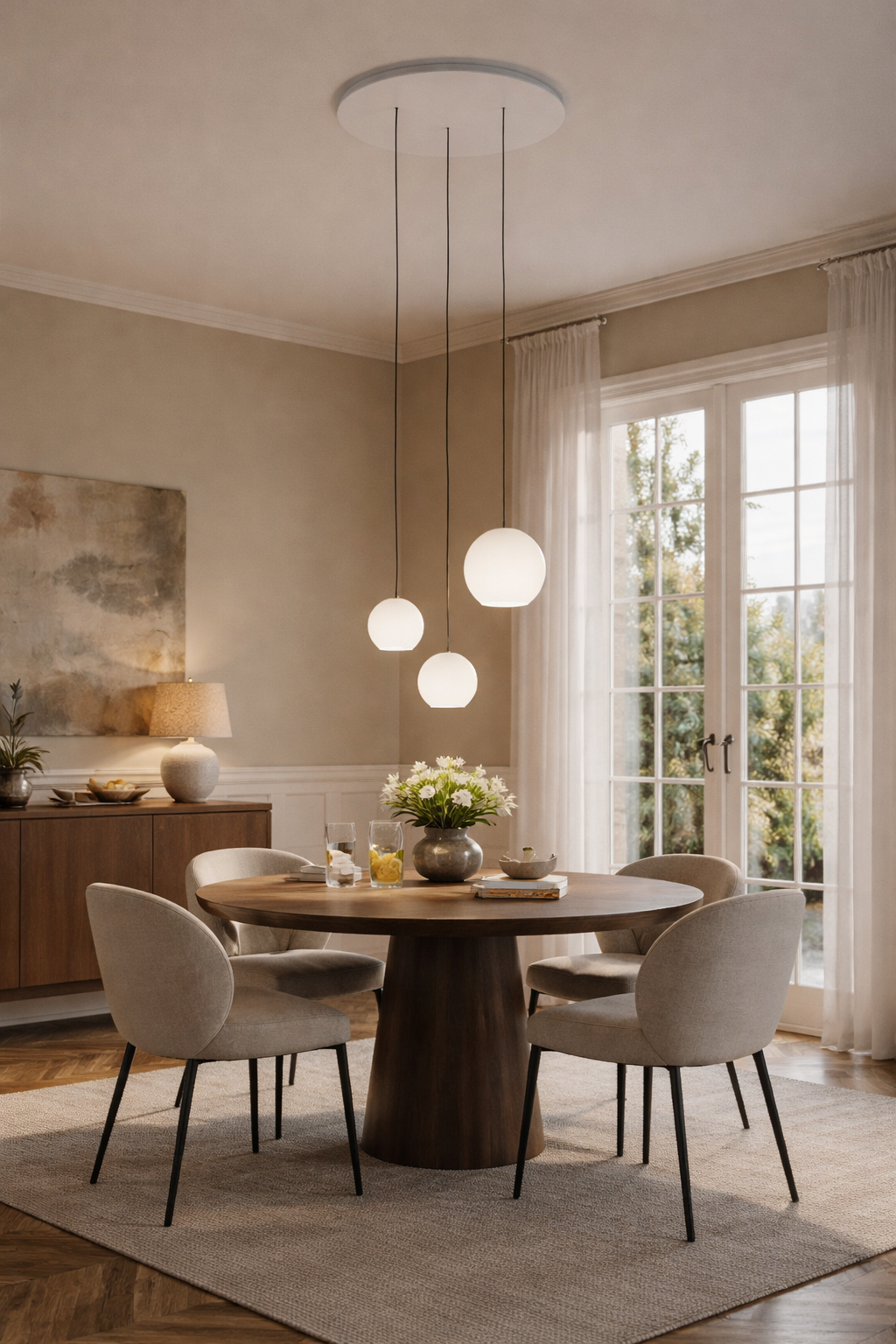 Die KOS Trio SL ist mehr als nur eine Leuchte – sie ist ein bewusst gesetztes Designstatement für Räume mit Anspruch. Drei elegant schwebende Pendel entfalten unter einem runden Baldachin eine außergewöhnliche Leichtigkeit und verleihen dem Raum sofort Tiefe, Struktur und Atmosphäre. Ob über dem Esstisch, im Wohnbereich oder als stilvoller Blickfang in offenen Grundrissen: Diese Leuchte zieht Aufmerksamkeit auf sich, ohne sich aufzudrängen.