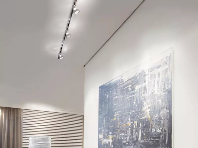 Le projecteur sur rail biphasé Conte Volare de Molto Luce pivote à 340° et s'incline à 90°, éclairant ainsi tous les recoins de la pièce. Son culot GU10 facilite le remplacement de l'ampoule. En option, le projecteur Conte peut être équipé d'une bague décorative, disponible séparément.