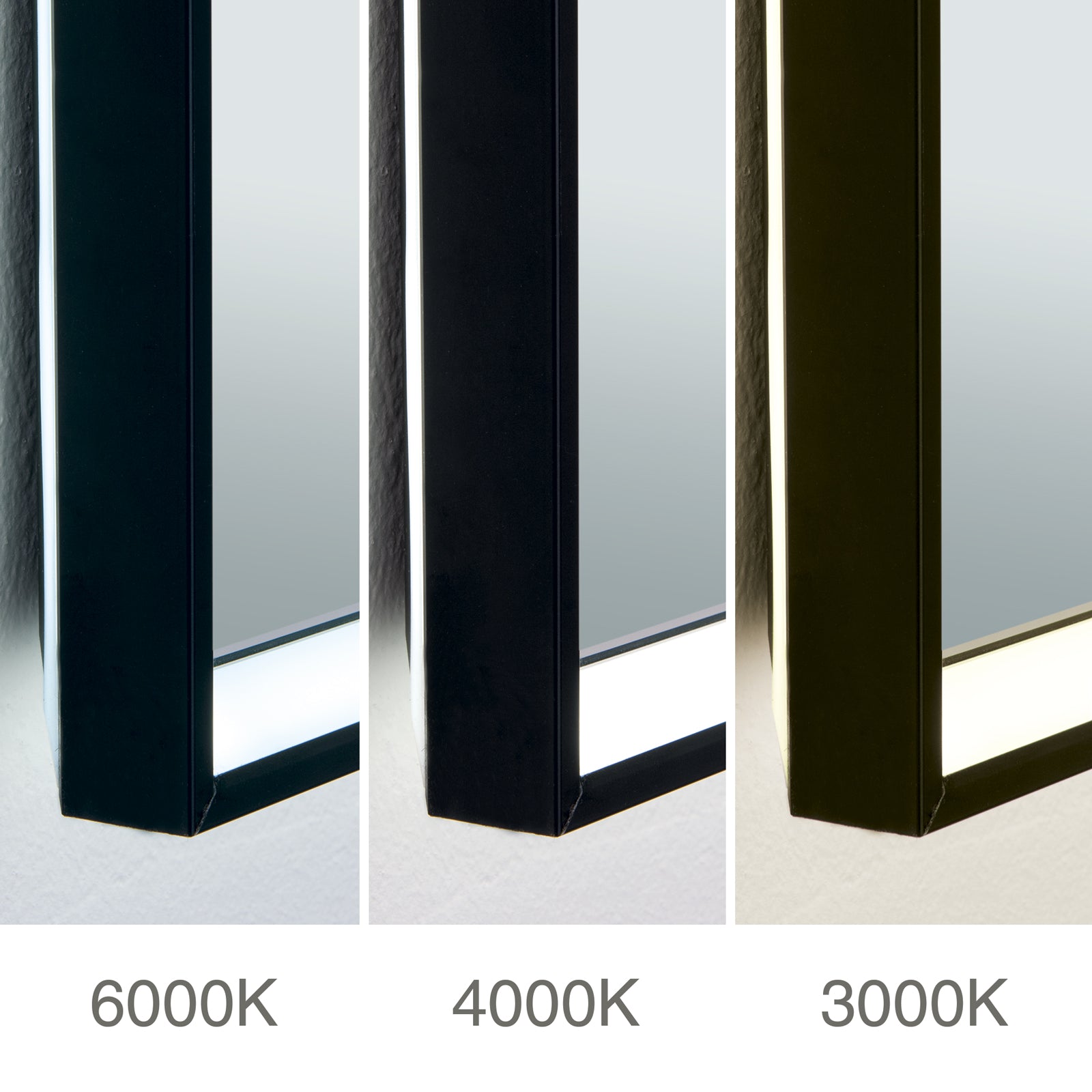 Découvrez l'élégance moderne avec le miroir Blacklight. Ce miroir offre trois températures de couleur réglables (3000 K, 4000 K et 6000 K) pour un éclairage parfait. Sa fonction de changement de couleur vous garantit une lumière idéale en toutes circonstances. Grâce à son traitement antibuée, le miroir reste parfaitement clair, même après la douche. Avec son élégant cadre noir et son design fin, il s'intègre harmonieusement à tout intérieur moderne et constitue un atout à la fois pratique et esthétique pour votre maison.