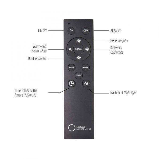 Leistung: 7W, Lumen: 700lm, Farbtemperatur: stufenlos, 2200K-5000K, Dimmbar: ja, über Fernbedienung, Schutzart: IP20