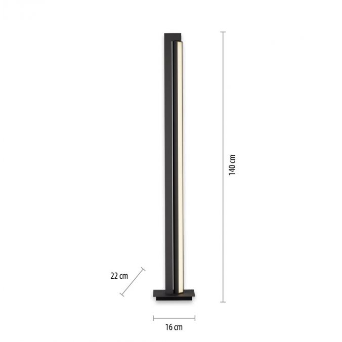 Leistung: 23W, Lumen: 2220lm, Farbtemperatur: 2700K - 5000K, Länge: 22cm, Breite: 16cm, Höhe: 140cm, Dimmbar: ja, über Fernbedienung/Fußschalter, Schutzart: IP20, CRI: 90, Energieeffizienzklasse: E