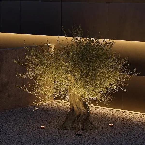 Cela crée une lumière qui met délicatement en valeur les plantes, les éléments de design et les allées.
