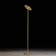 Nova Plano - Deux best-sellers dans une seule lampe ! Avec l'uplighter Nova Plano, les best-sellers de deux familles de produits ont été combinés : un uplighter lumineux et le bras de lecture du lampadaire 9656 assurent ensemble l'expérience d'éclairage dans chaque salon. Les formes coordonnées assurent un look harmonieux et moderne. Dimensions : 332 mm de large, 1850 mm de haut ; Finitions : laiton, noir, platine, aluminium ; Dimmable : oui, avec deux variateurs tactiles ; Température de couleur : 2700 Kelvin ; La livraison comprend : une source lumineuse LED installée en permanence. Numéro d'article : L-221125