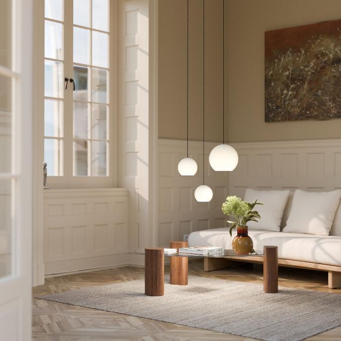 Besonders beeindruckend ist die flexible Verstellbarkeit der Pendel. Jedes Licht lässt sich individuell in der Höhe anpassen und frei positionieren – so entsteht immer genau die Lichtkomposition, die zum Raum und zur Situation passt. Symmetrisch, bewusst ungleichmäßig oder dynamisch verteilt: Die KOS Trio SL macht jede Gestaltungsidee mit.