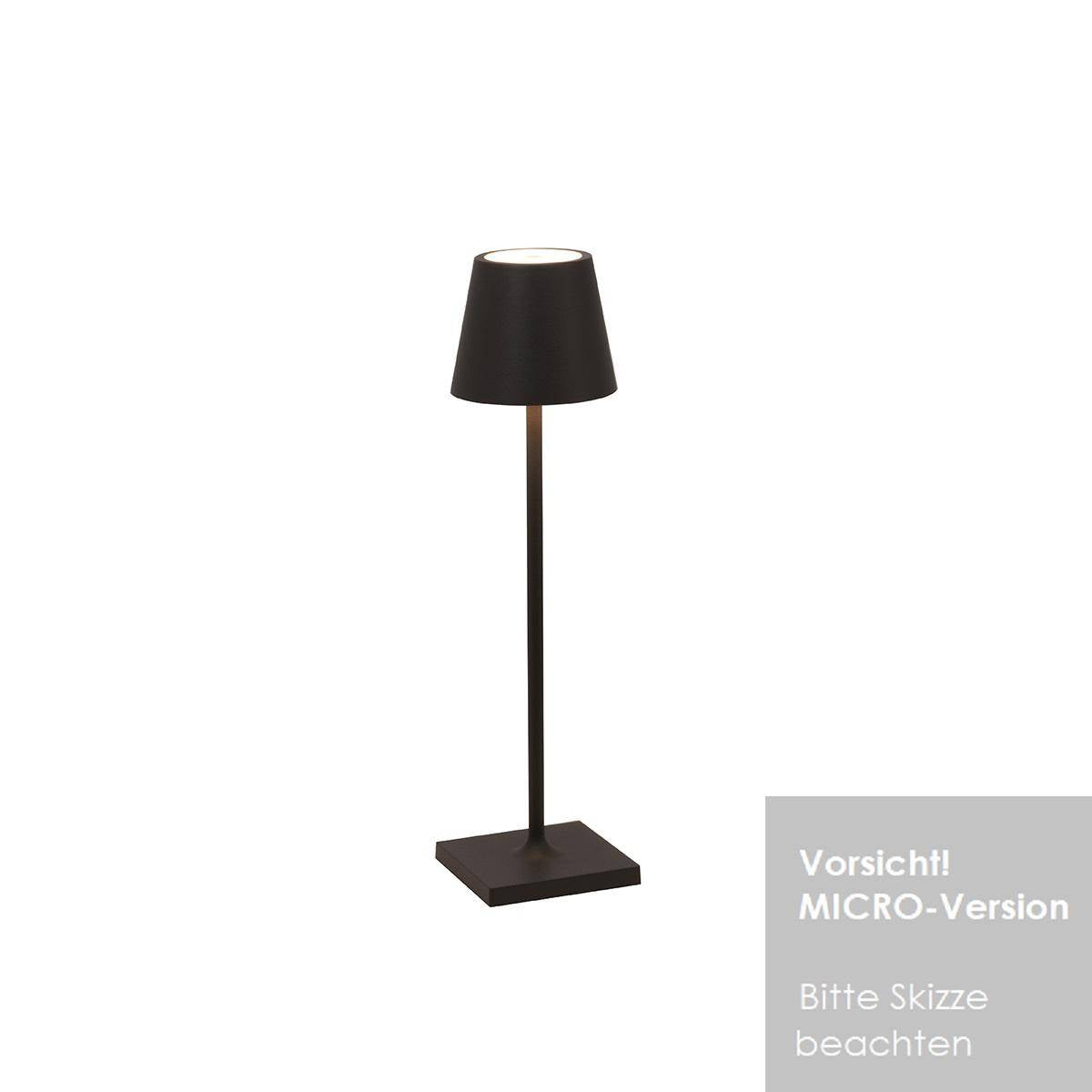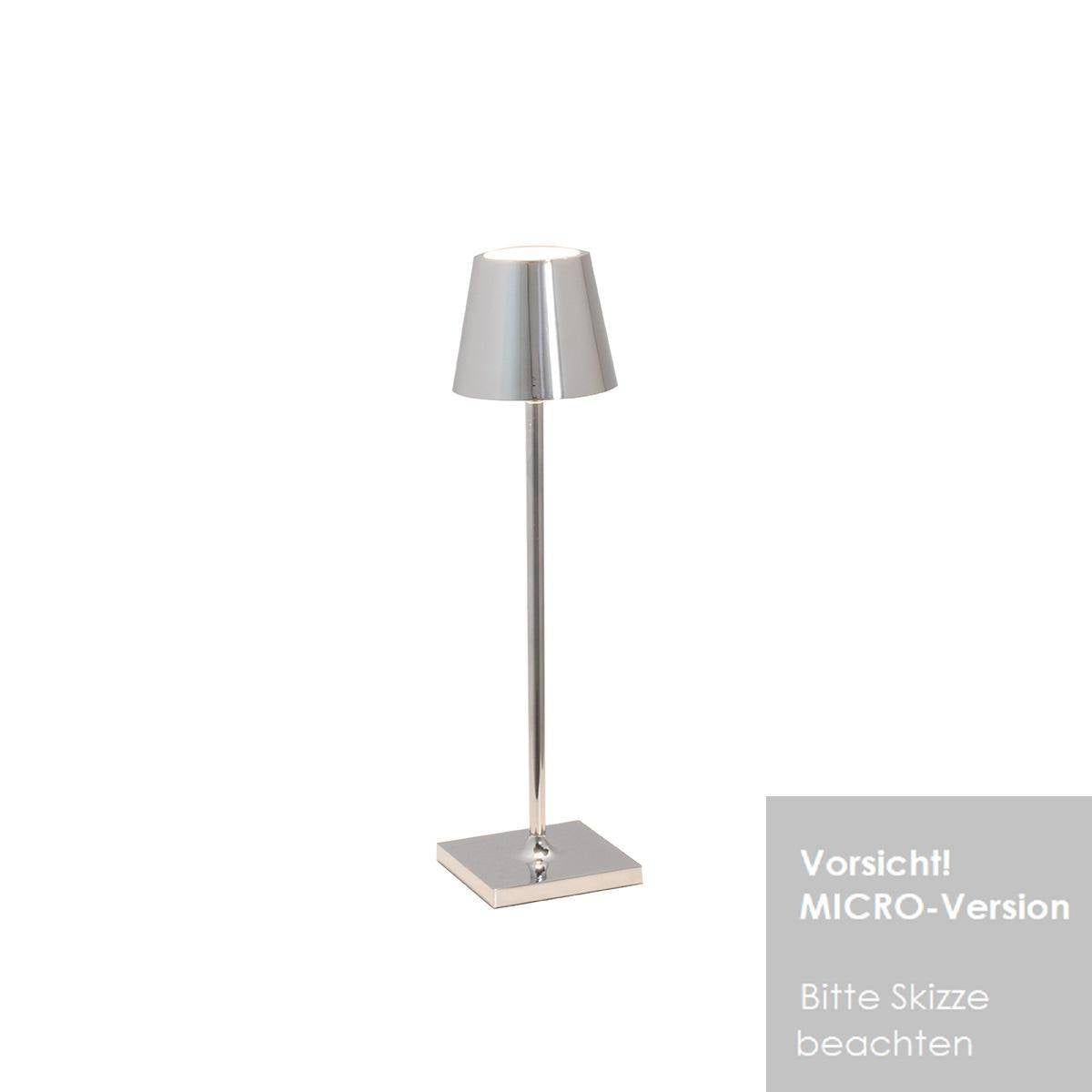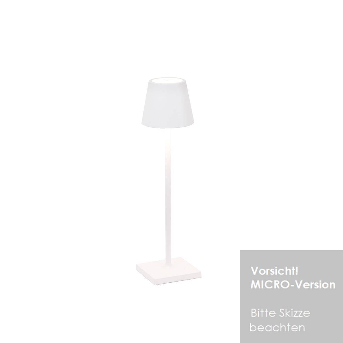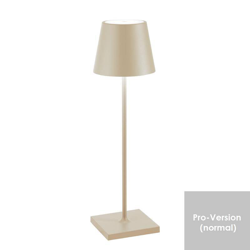 Tragbare Poldina LED-Akkuleuchte von Zafferano bietet durch viele Farben und unterschiedliche Größen eine große Auswahl für jeden Geschmack. Ob im Garten bei langen Sommerabenden, im Restaurant bei gutem Essen oder als Geschenk - Poldina eignet sich ideal und kann in einigen Farben auch im Außenbereich verwendet werden. Die Farbtemperatur der Leuchte ist einstellbar: 2200-2700-3000Kelvin (extra warmweiß - warmweiß) und sie kann stufenlos per Touch gedimmt werden, Farbwiedergabe: CRI80, Lieferung erfolgt: inkl. LED-Leistung (fest verbaut, nicht austauschbar), inkl. in der Leuchte integrierter Akku, USB-Ladekabel mit Adapter und Kontakt-Ladebasis (9,4x9,4cm, Schutzart IP20).